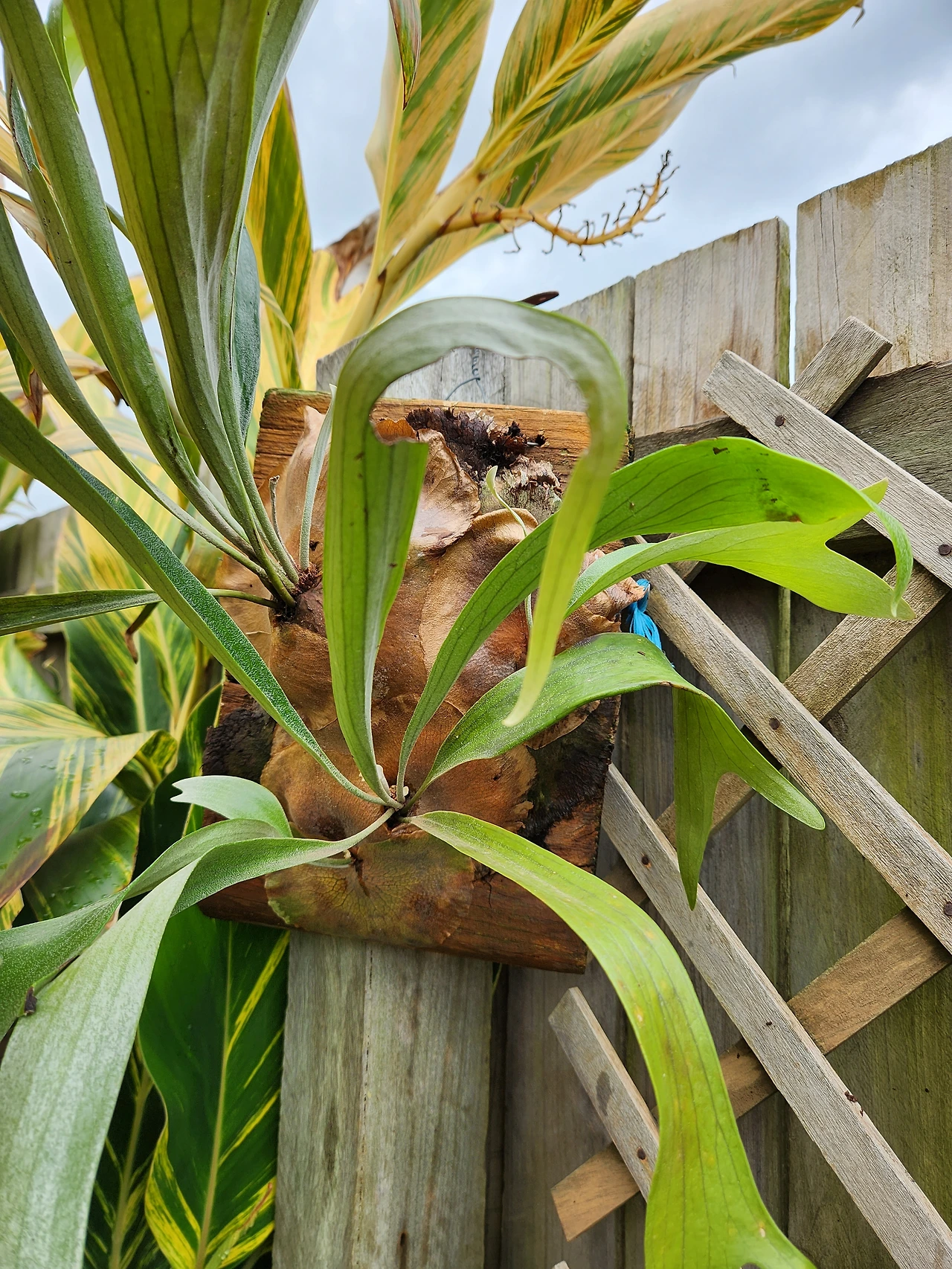 믹이 작년에 줘서 훌쩍 자란 버즈 네스트와 어제 받은 박쥐란. 난, 깜짝 방문한 앤이 돌아가고 난 후, 박쥐란을 반 그늘의 바람이 잘 통하는 펜스에 매달았다.