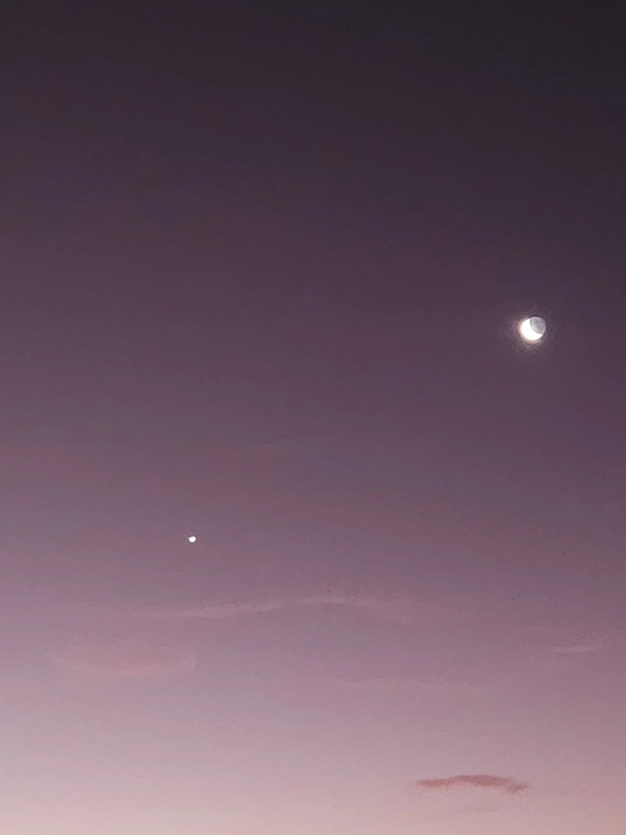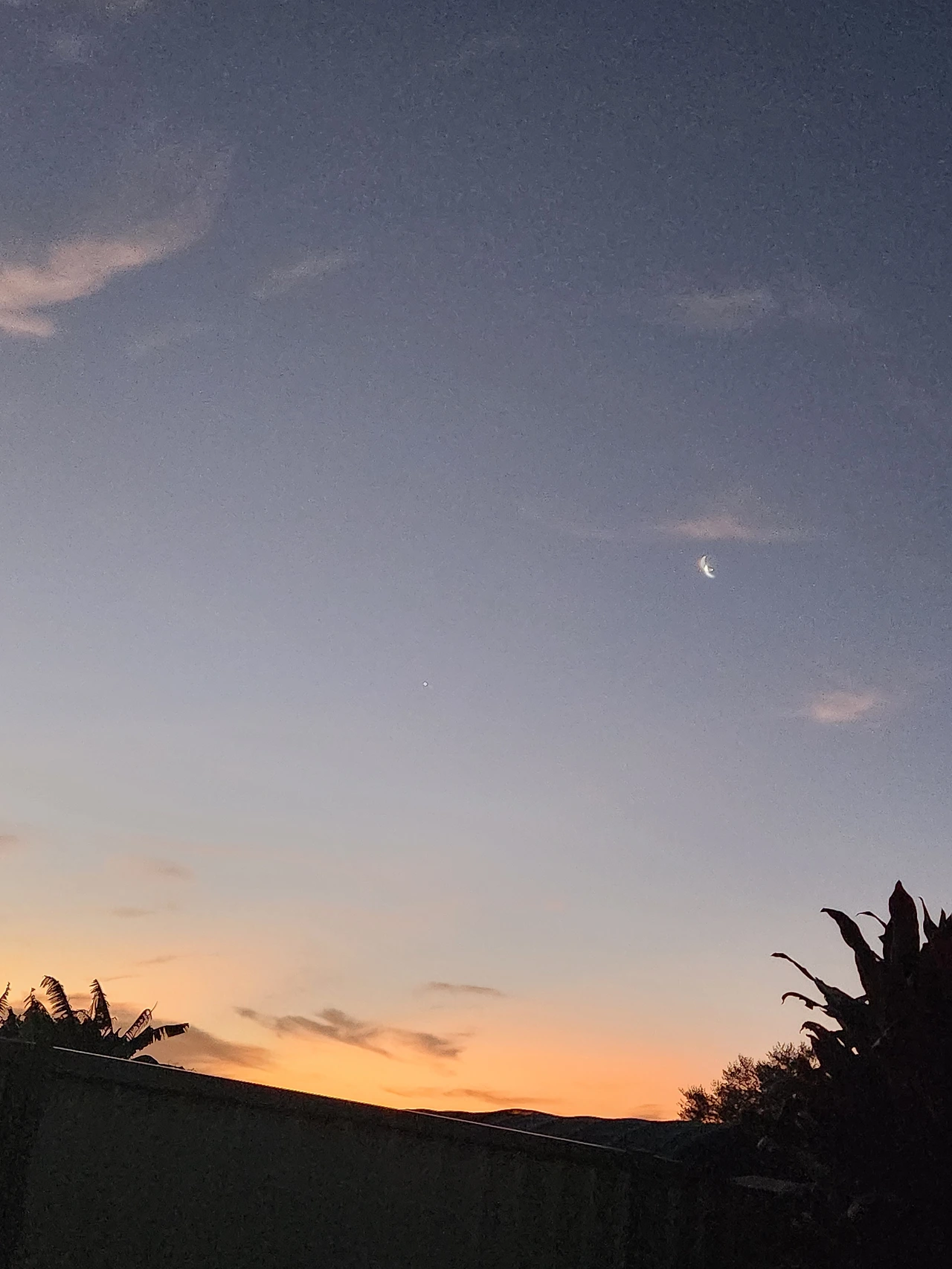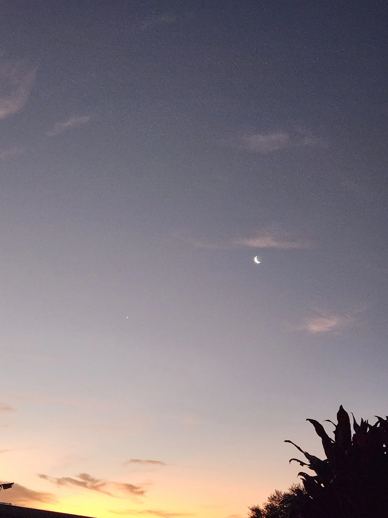 쪽배가 바다를 하염없이 해하듯, 초승달은 온종일 하늘을 노 저어 왔을 텐데, 햇빛에 가려져 내 눈에 보이지 않았다. 행운일까. 뒤뜰이 서쪽에 있어 난 매번, 첫 별과 우하는 노란 병아리색 초승달을 본다. 오늘도 바람이 선선해진 해 질 녘에 그 둘의 만남을 목격했다. 파스텔 톤으로 붉은 하늘에 금가락지를 닮은 가녀린 초승달보였다. 저 달로 인해 서양의 하늘에서도, 동양의 음력 날짜를 한다. 오늘이 음력 초승이구나, 하고. 그러다 오늘은 불현듯, 서양사람들은 초승달이 뜨는 날을 어떤 방식으로 계수할까, 잠시 궁금했다. 하지만 초승달이 깜깜한 블랙홀로 사라지듯이, 난 서양사람들이 계수하는 방법을 아릴 수 없었다.