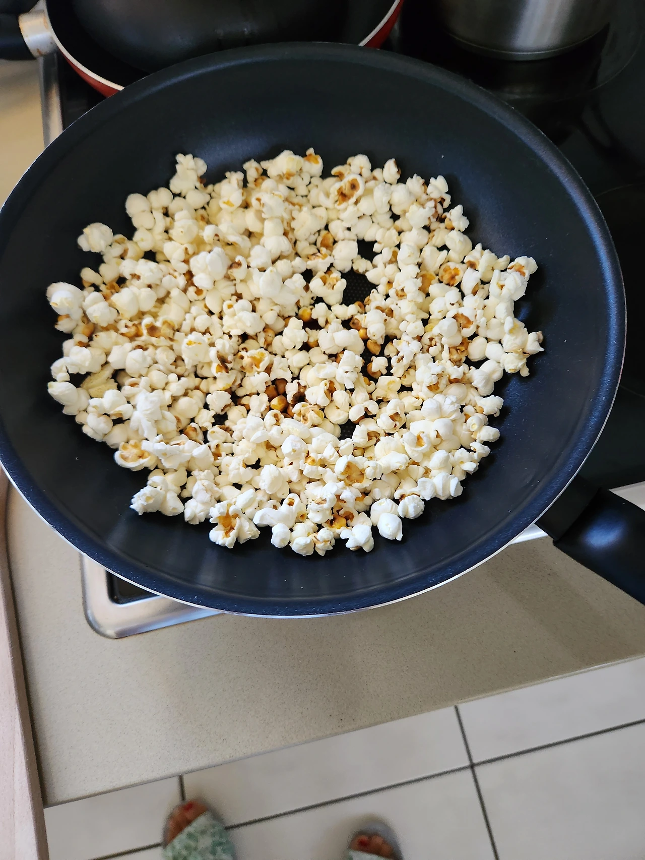 옥수수차를 끓이려고 콩을 볶았는데 팝콘이 되었다