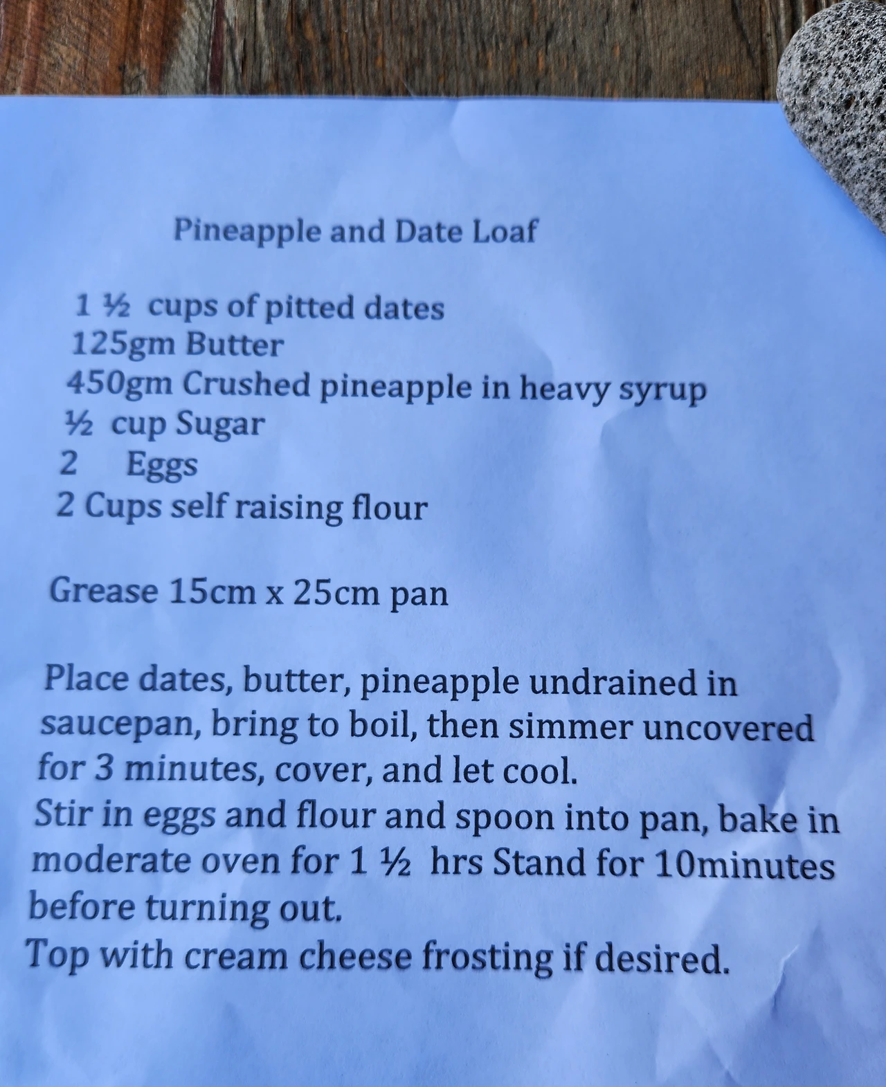 어제 할매의 손글씨를 옆집 할배가 타이핑 하신, " 파인애플 앤 대추빵 레시피".