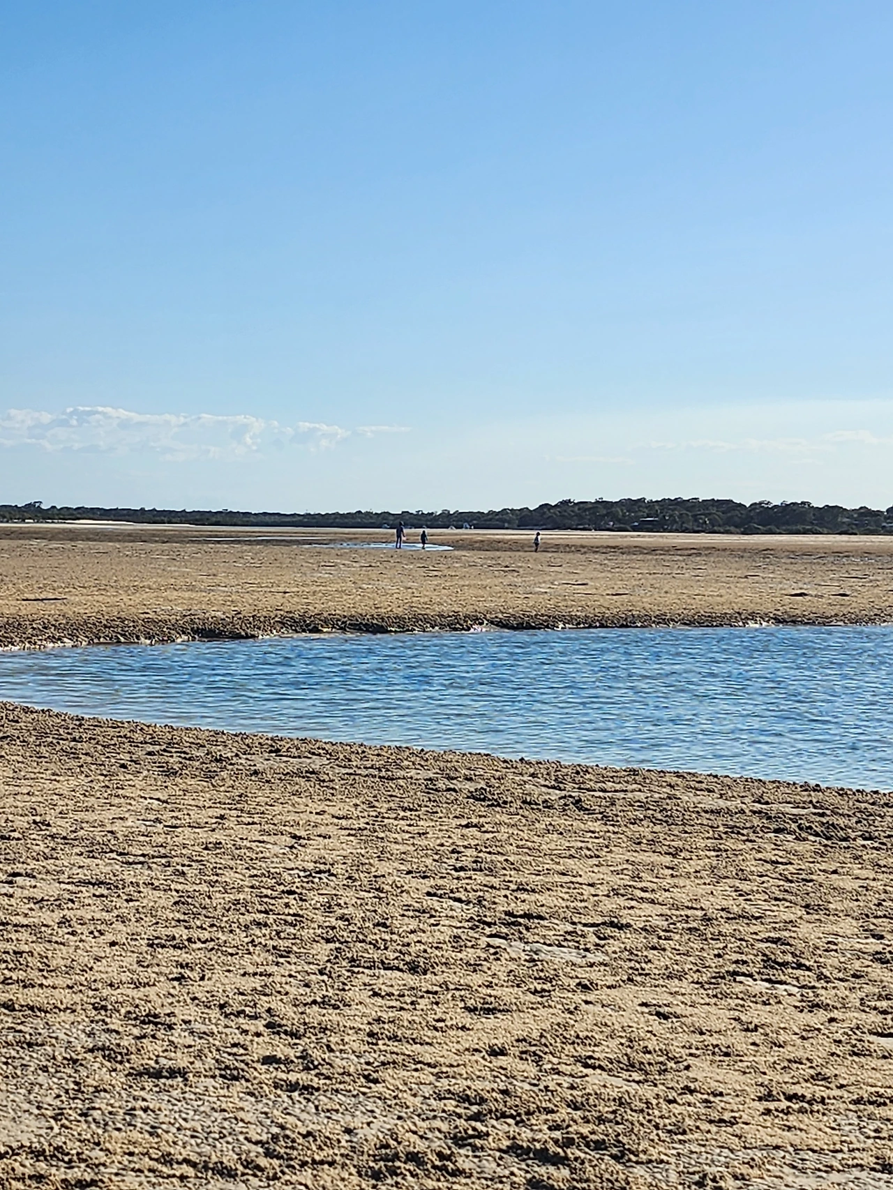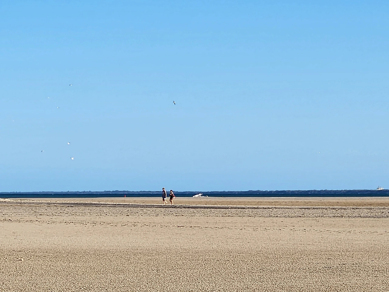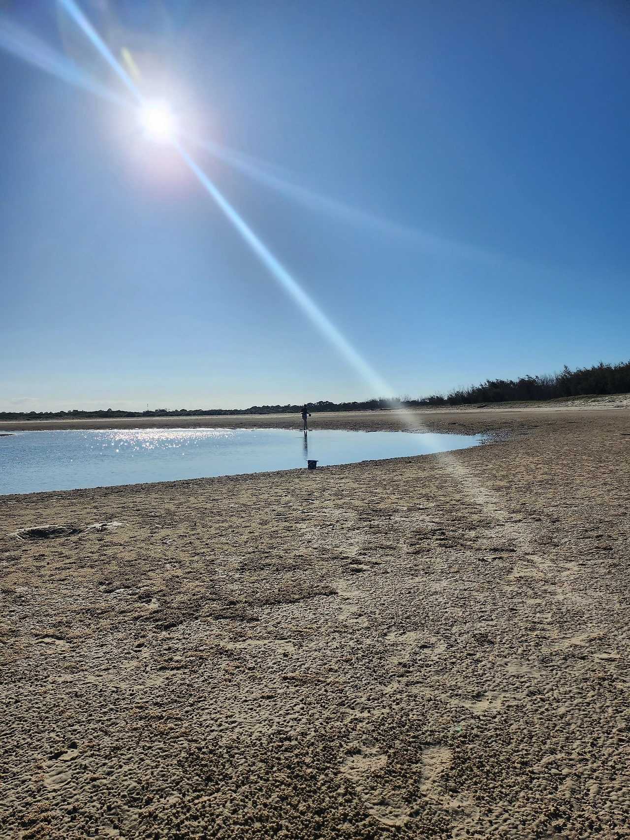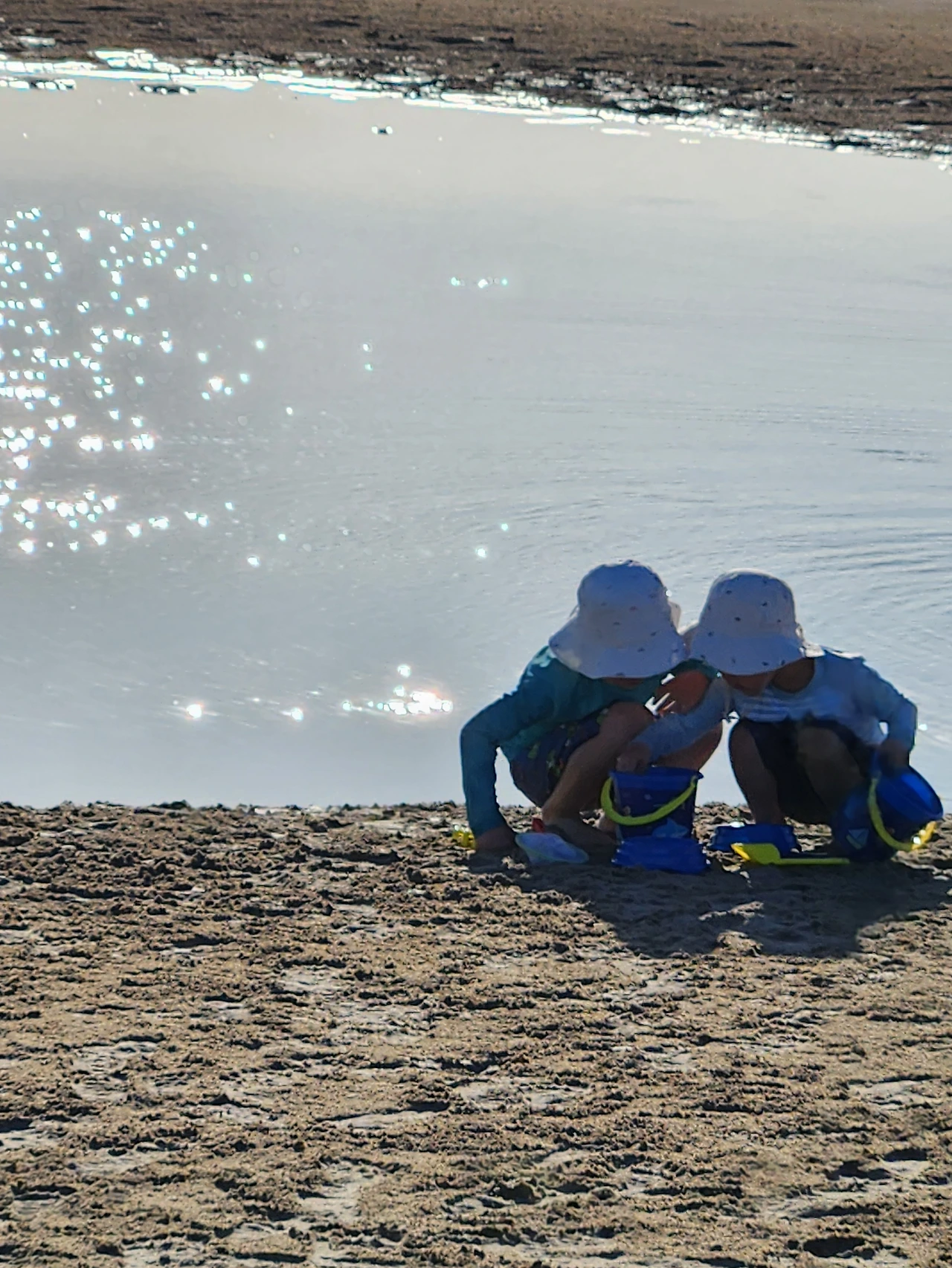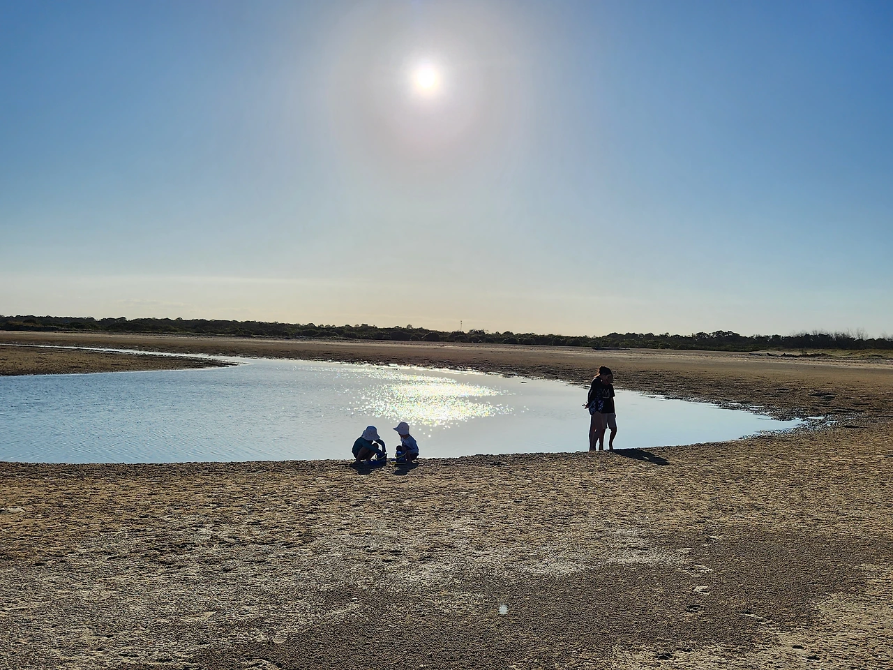 모래와 진흙의 중간 즈음 질감인 새하얀 흙을, 맨발로 디디면 푹푹 발이 빠진다. 마른 모래뻘 속으로 깊이 든 발을 빼내며 어렵사리 걸어가서, 물이 맑게 고인 남겨진 바닷물가에 닿는다. 놀기 잘하는 외손주는 할머니, 저어기 가면 피시 많아? 잡을 수 있어? 하며 아가의 부푼 꿈으로 폭폭 빠진 조막만 한 발을 쏙쏙 당겨 올리며 곧잘 따라온다. 맑은 물은 무릎까지 차올라 우리가 들어가니 반짝거림을 머금으며 우리를 반겨 담는다. 외따로 남겨진 바다 또한 외로움을 타는가.