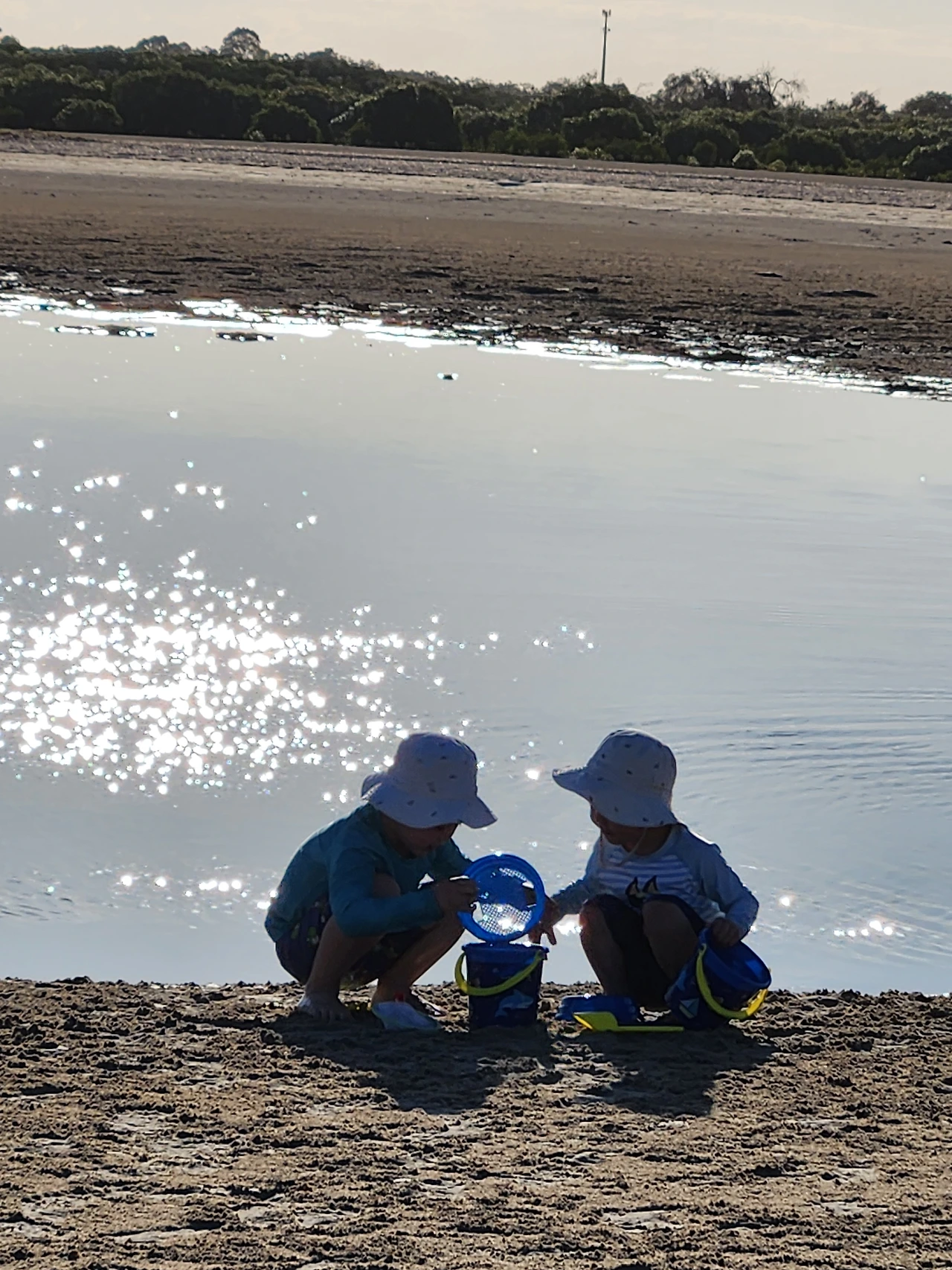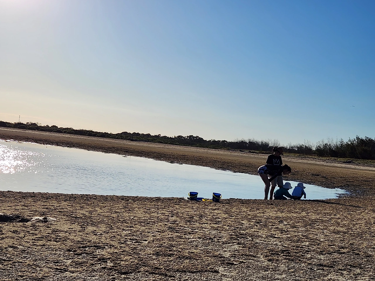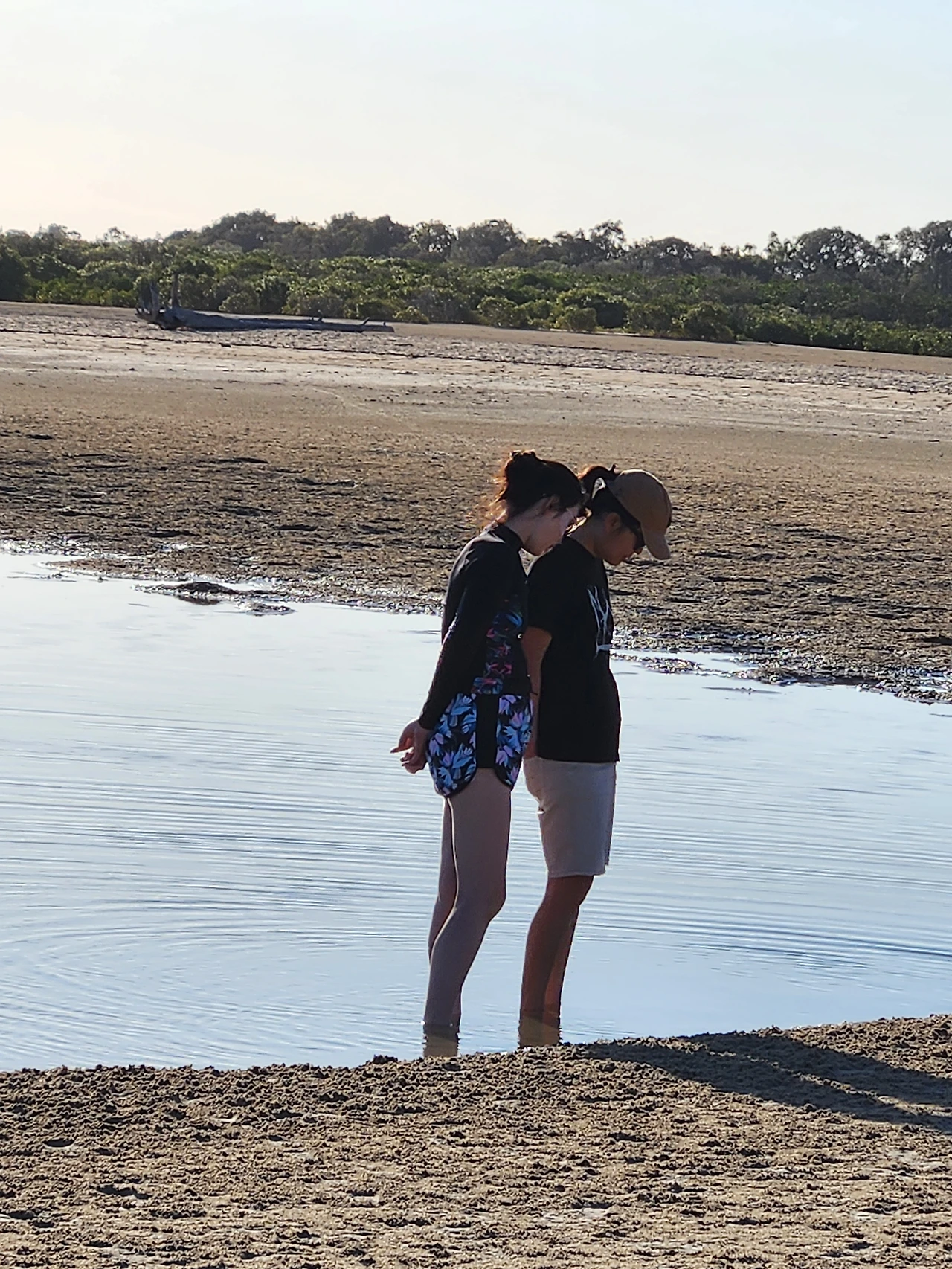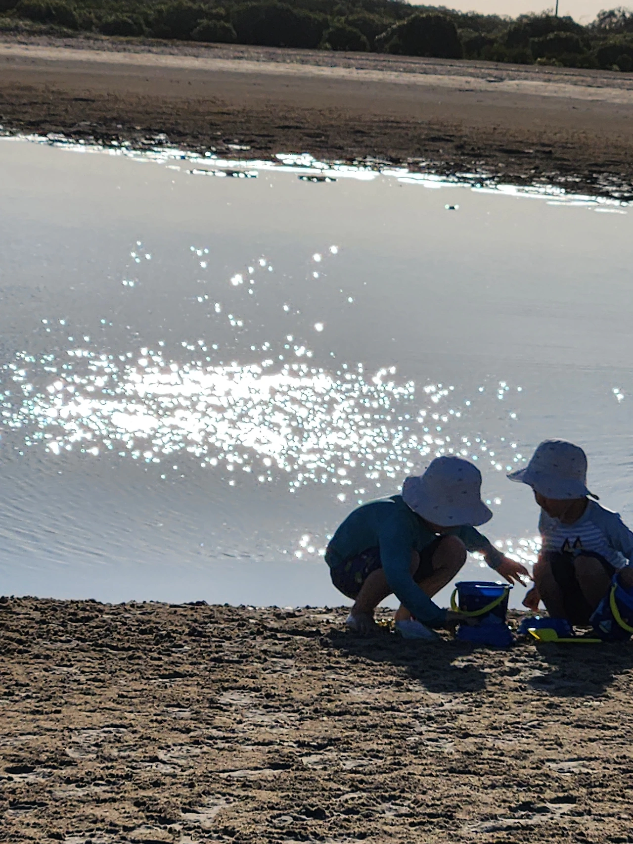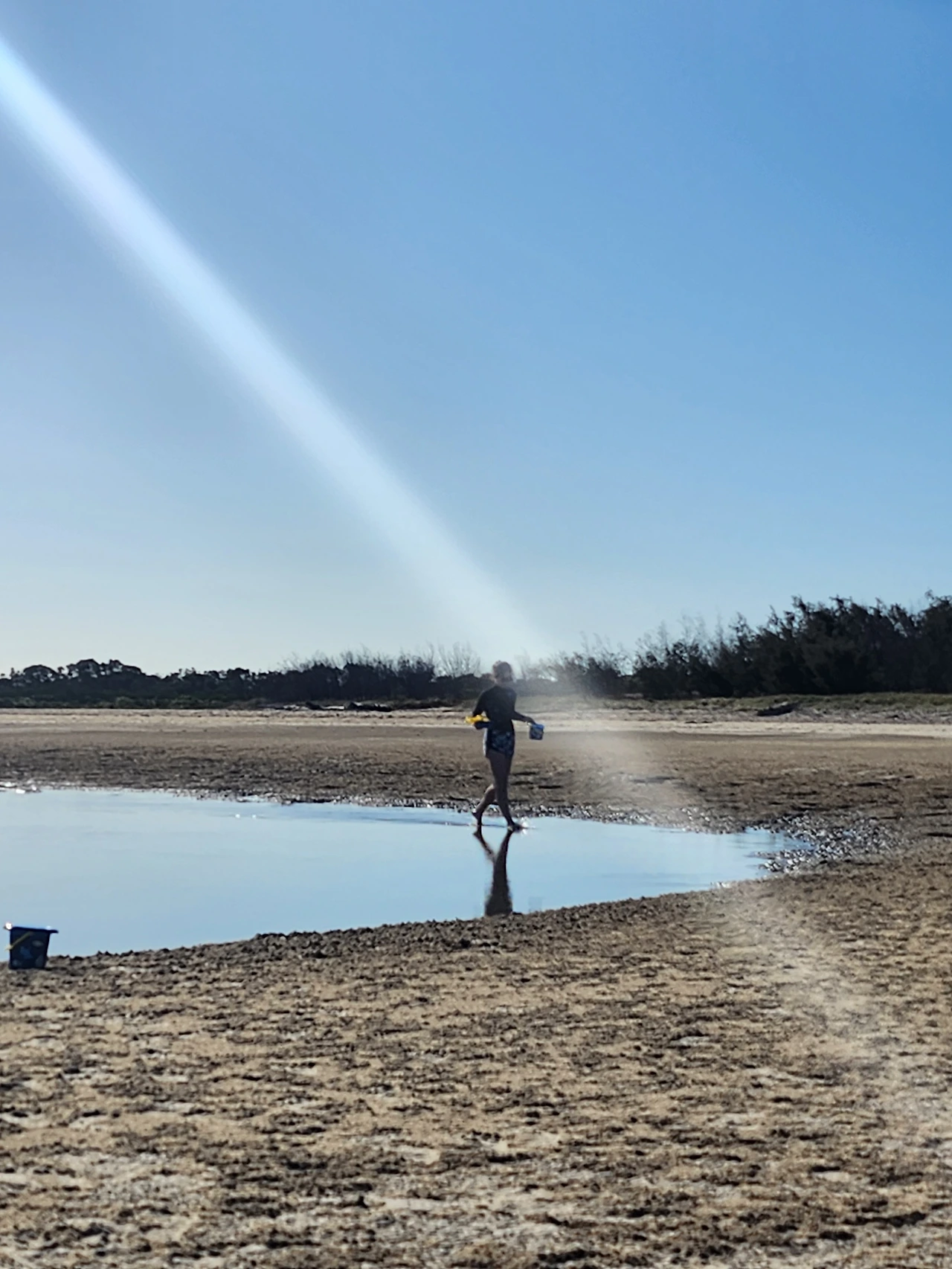 모래와 진흙의 중간 즈음 질감인 새하얀 흙을, 맨발로 디디면 푹푹 발이 빠진다. 마른 모래뻘 속으로 깊이 든 발을 빼내며 어렵사리 걸어가서, 물이 맑게 고인 남겨진 바닷물가에 닿는다. 놀기 잘하는 외손주는 할머니, 저어기 가면 피시 많아? 잡을 수 있어? 하며 아가의 부푼 꿈으로 폭폭 빠진 조막만 한 발을 쏙쏙 당겨 올리며 곧잘 따라온다. 맑은 물은 무릎까지 차올라 우리가 들어가니 반짝거림을 머금으며 우리를 반겨 담는다. 외따로 남겨진 바다 또한 외로움을 타는가.