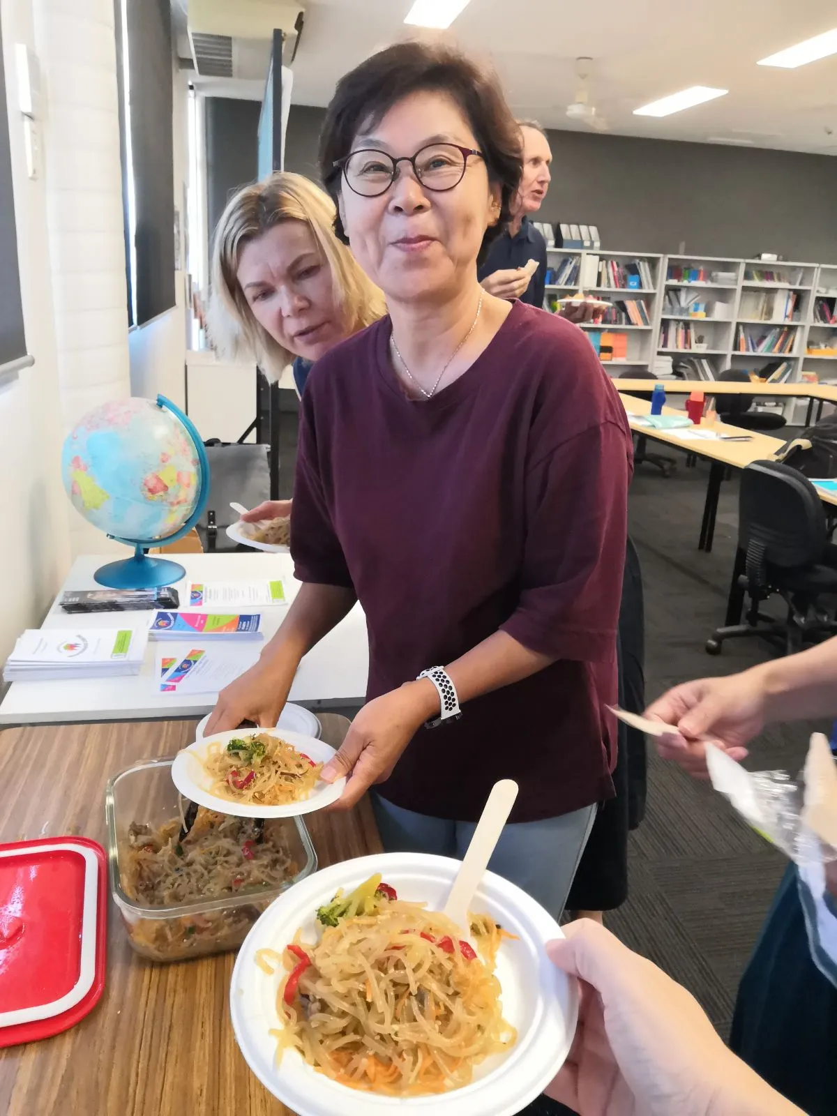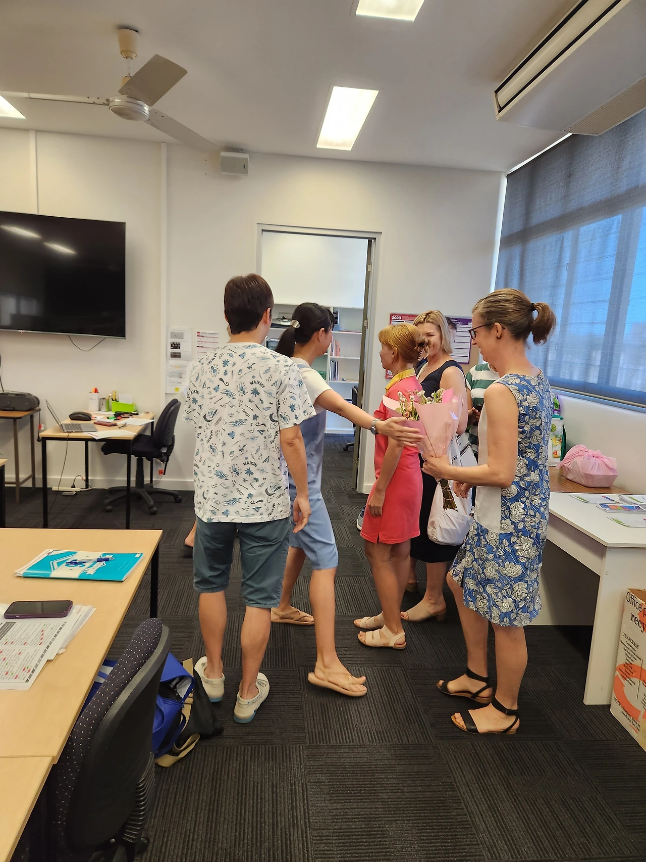 떠나갈 선생님 린과 내년부터 가르치러 오실 티처 질, 그리고 몇몇 학생들이 함께 웃으며 반겨주었다. 커피타임 후부터는 쫑파티 기념으로 Backyard Ashes라는 호주산 코믹영화를 시청하기로 되어있었다. 우리는 영화에 대한 사전 정보가 적힌 프린트물을 돌아가면서 읽었다. 서로 앙숙이던 이웃 사이에 뒷마당에서 벌어진 크리킷 게임으로 화해를 해나가는 코믹한 장면들을, 떠나갈 선생 린의 지도로 먼저 워밍업 하였다. 그리고 10시 반부터 30분 간 커피타임이 되었다. 통 큰 우크라이나 그녀는 우리 학생들 모두를 급하게, 비어있던 옆교실로 몰아넣었다. 그녀의 인솔대로 우린 하나가 되었다. 다른 연령대도, 다른 출신국가도 다 하나로 뭉개어, 아니 하나의 반죽으로 몰랑몰랑하게 뭉쳐졌다. 우린 모두 일사불란하고 분주하게 움직였다.