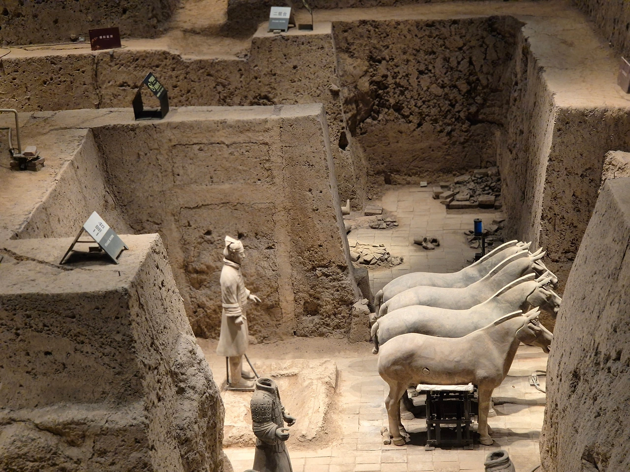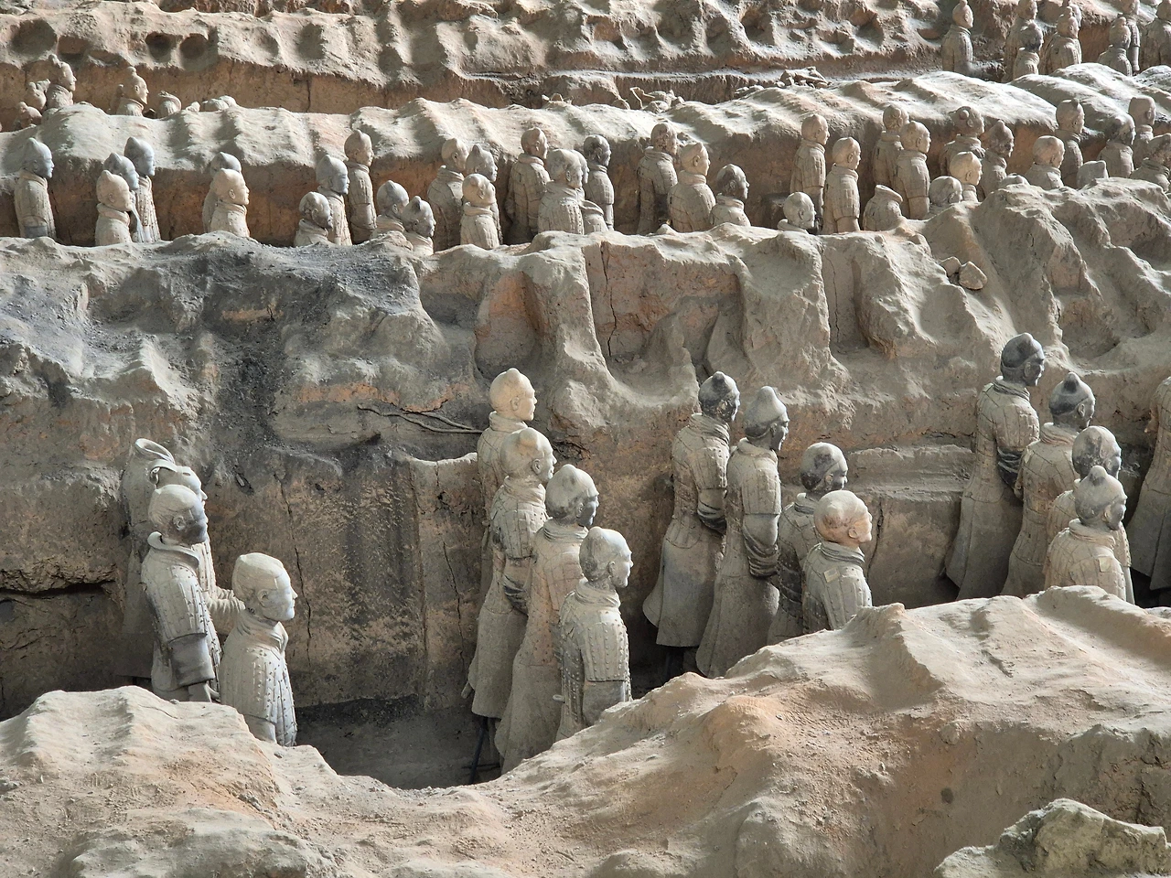 다른 갱에서는 부서진 병사들이 눈에 띈다. 머리가 없거나, 팔다리가 흩어진 채 복원 중인 모습들. 진나라 멸망 이후 항우의 군대에 의해 파괴된 흔적이다. 제국은 무너졌고, 그 상징도 함께 부서졌다.