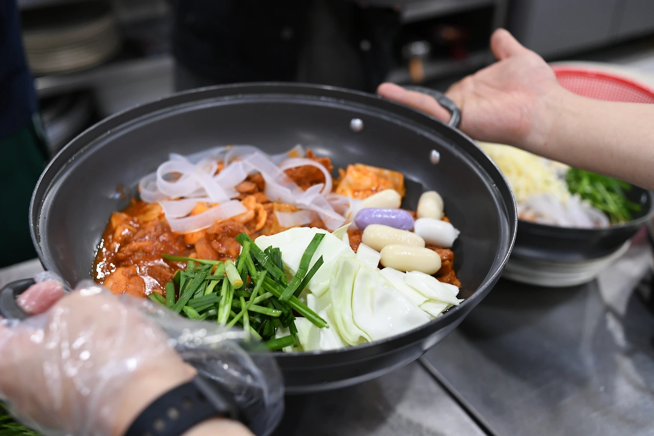점심 식사를 닭갈비로 마친 청소년들이 서포터즈 봉사단과 함께 피구를 하는 동안 어벤저스 팀은 농장에서 직접 따 온 오이를 200개를 썰어서 오이소박이를 담갔다. 커다란 통으로 4통이나 만들었지만, 그것은 겨우 4일 먹을 양이라니, 매끼 식사 준비를 하는 게 쉽지 않을 거란 생각이 든다. 점심 식사도 하지 못하고 다시 ‘진이네 떡볶이’ 맛집 대표 김두진 회원의 솜씨로 간식을 준비하였다.