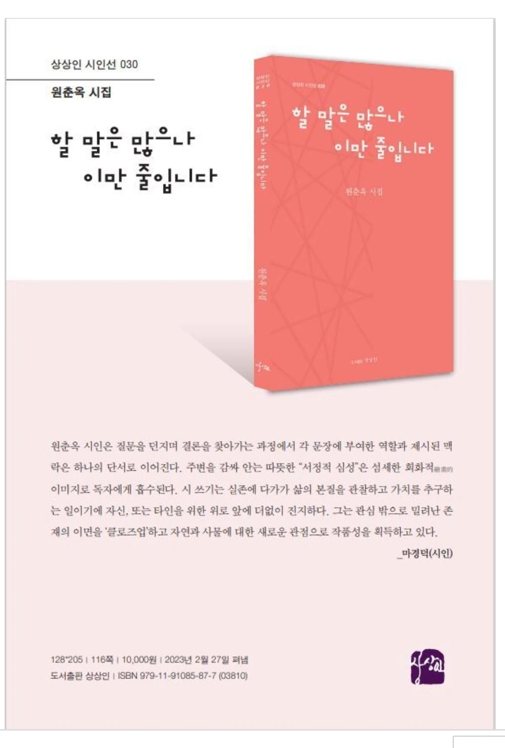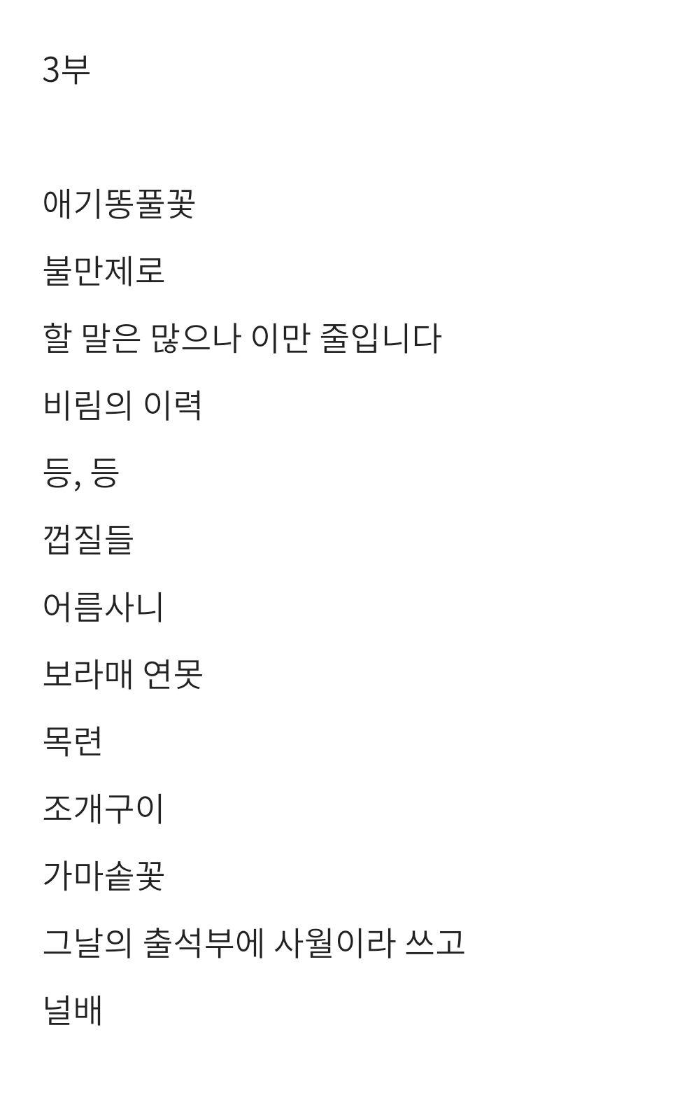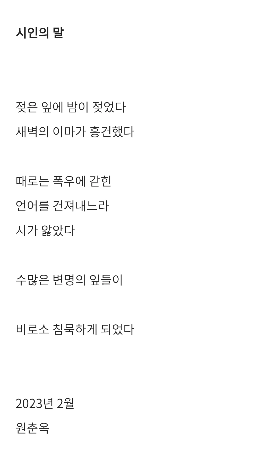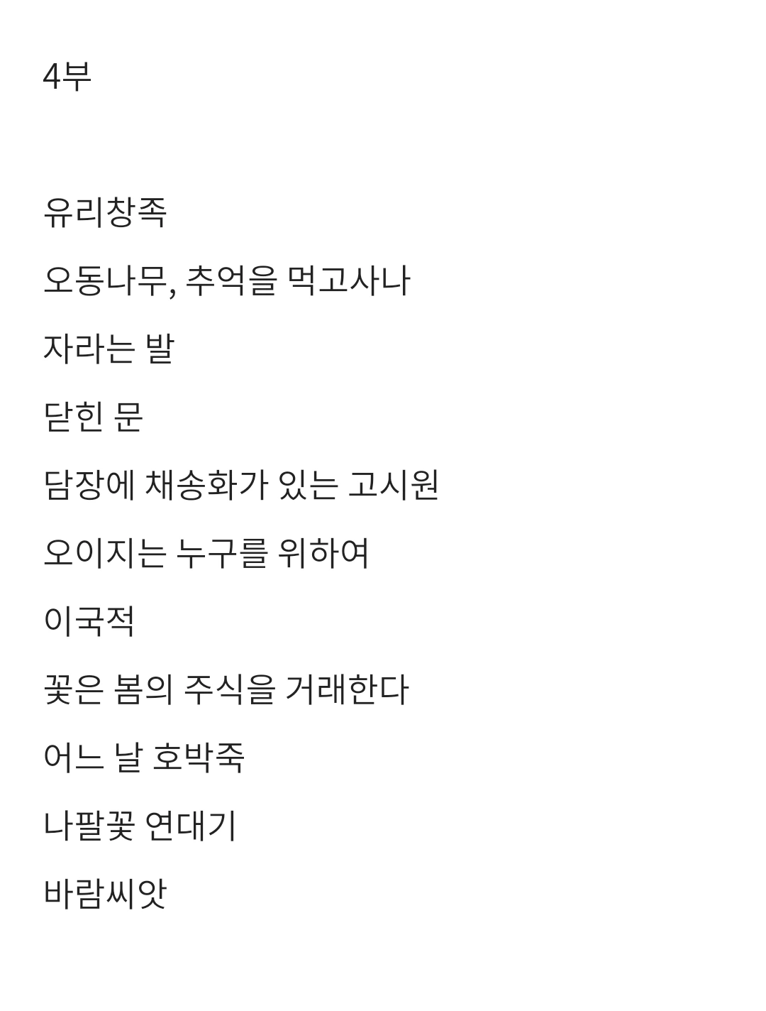 봄의 쪽수는 얼마나 될까 바람이 흔들릴 때부터 꽃이 필 때까지 각주 없는 불통의 문장을 더듬는다 엷어진 지문이 마지막 장을 넘길 때 감정의 폰트가 달라 당황하지 않기를 통증의 자간 크지 않기를
