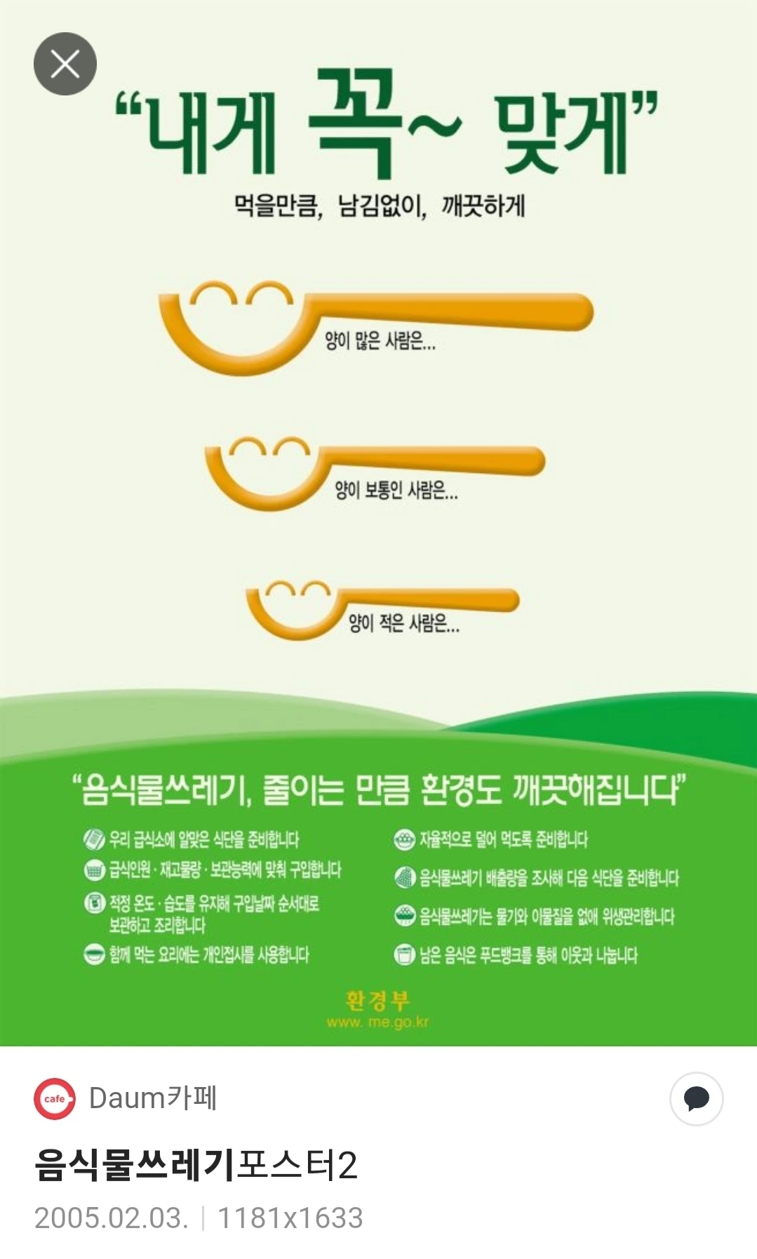 생활의 편리함을 추구하기 위해 새로운 기기를 만들어 사용하지만, 조금은 불편하더라도 환경 문제를 우선 더 생각하여야 할 것이다. 그리고 무엇보다도 음식물 쓰레기를 최소한 줄이도록 국민 모두 노력해야만 한다.