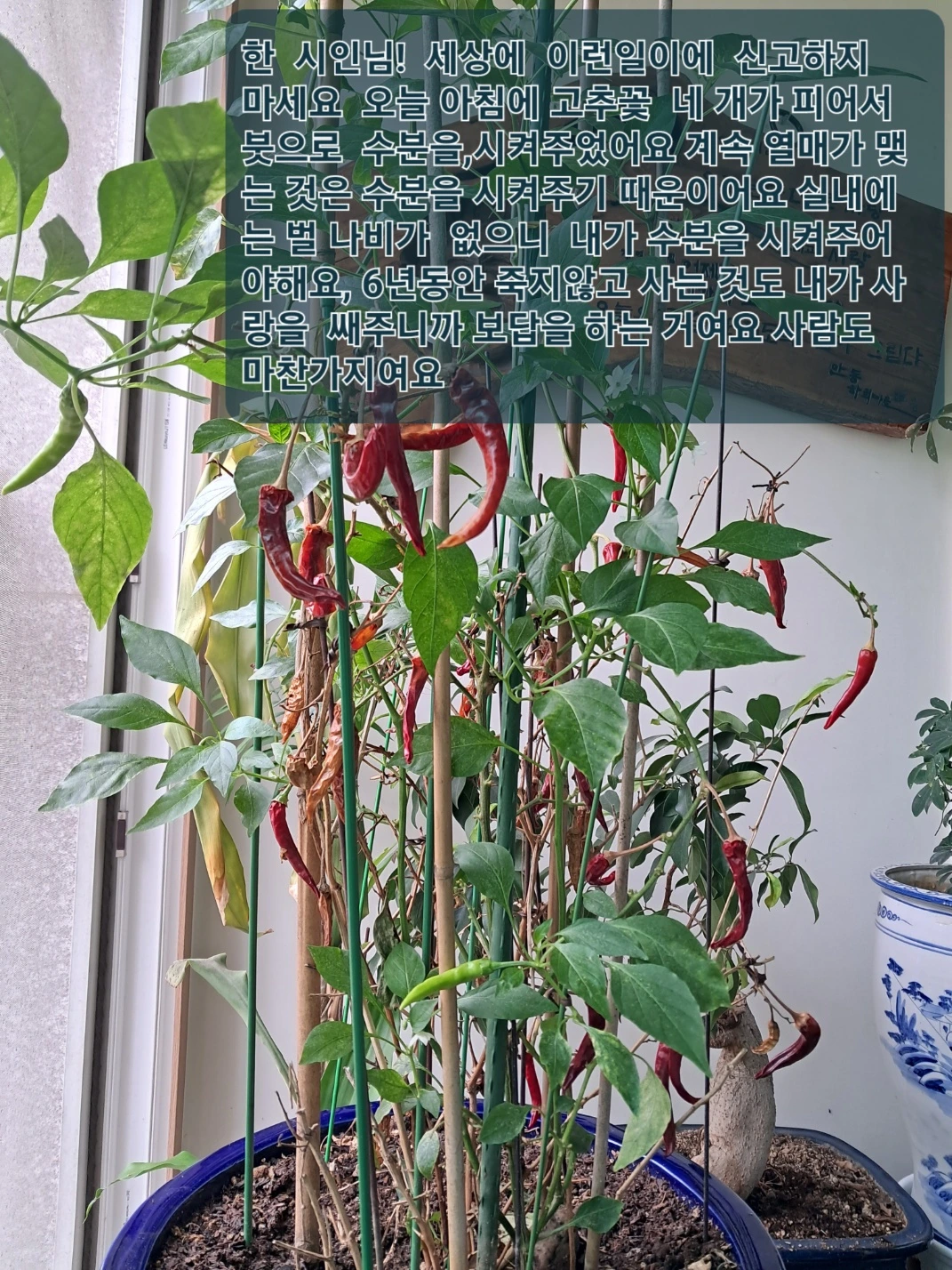 강동문인회 정영기 시인님께서 자택 아파트 베란다에서 기르고 있는 고추나무다.