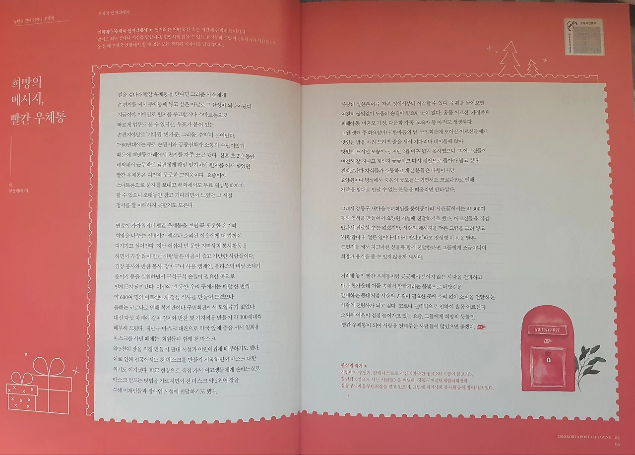 2020. 12월 <우체국과 사람들>사보에 실린 필자 글