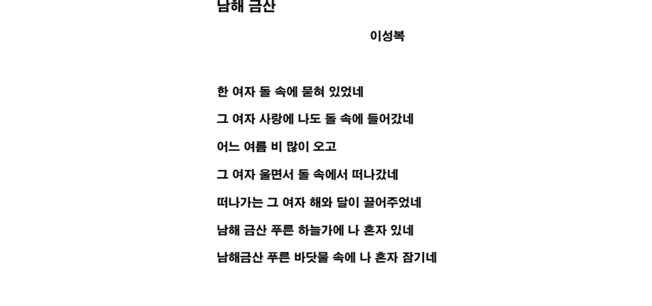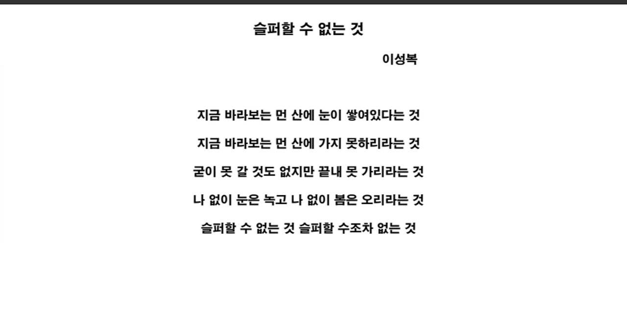 이성복 시인님이 강의하면서 화면에 띄워서 직접 낭독과 함께 해설을 해 줌