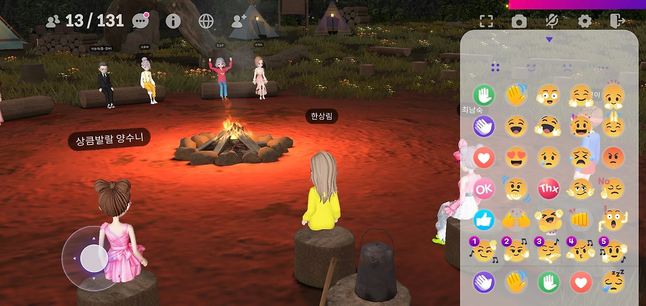 또한 오른쪽 이모티콘으로 표정과 모션을 맘대로 설정하여 하트도 날리고 손뼉도 치고 춤도 츨 수 있다.