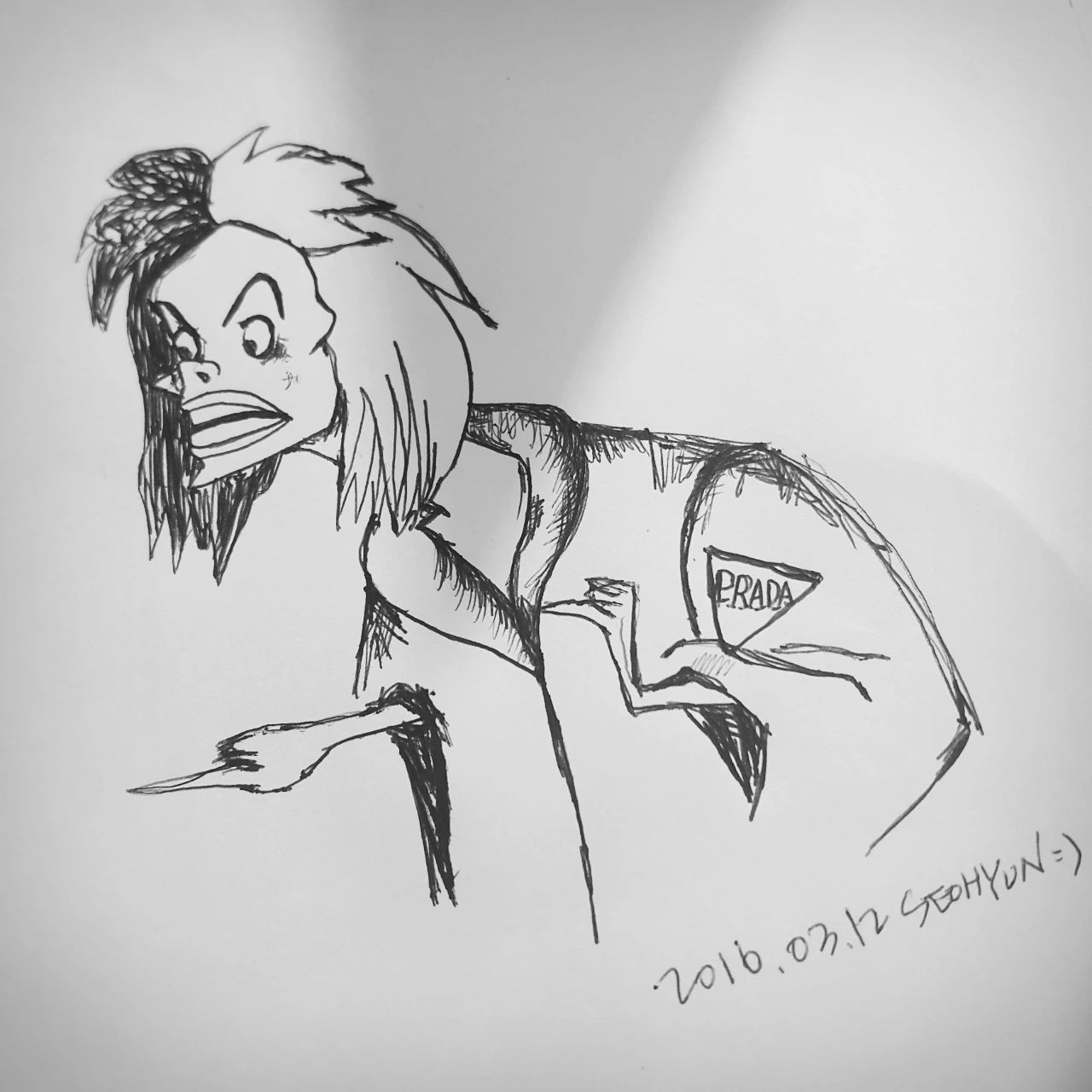 유난히 눈길이 가는 여자가 있었다. 떡방이라는 존재를 몰랐을 때 나는 그 여자에게 매번 팜플렛을 건넸다. 프라다. 여자가 입은 두툼한 검은 외투에 붙어있는 상표가 눈에 들어왔다. 여유로울 것 같은 그 이름에 '누구든 건드리기만 해봐.'라는 식의 눈빛과 앙다문 입은 부자연스럽게만 느껴졌다. 유독 눈이 갔던 이유는 101 마리 달마시안 이라는 영화의 마녀와 비슷하게 생겼기 때문인데 다른 점이라면 그녀는 달마시안 코트 대신 프라다를 입고 있었다는 것이다.