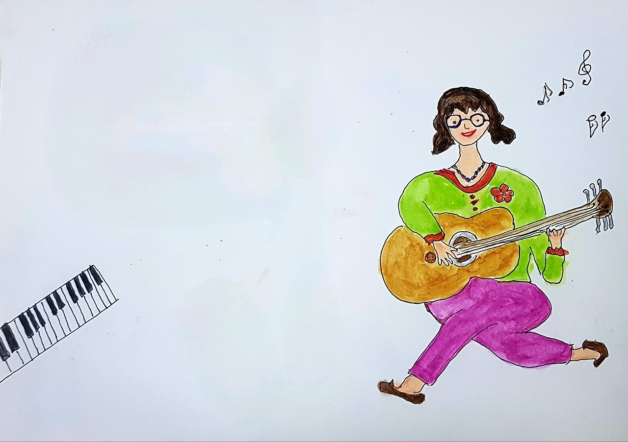 그렇기에 그림에는 실제의 나의 일상과는 다른, 내가 상상하는 ‘희망 일상’도 표현돼 있었다. 나는 반려동물을 키우지 않지만 반려견과 산책을 한다던가, 나는 기타를 못 치지지만 기타를 친다던가 하는…….