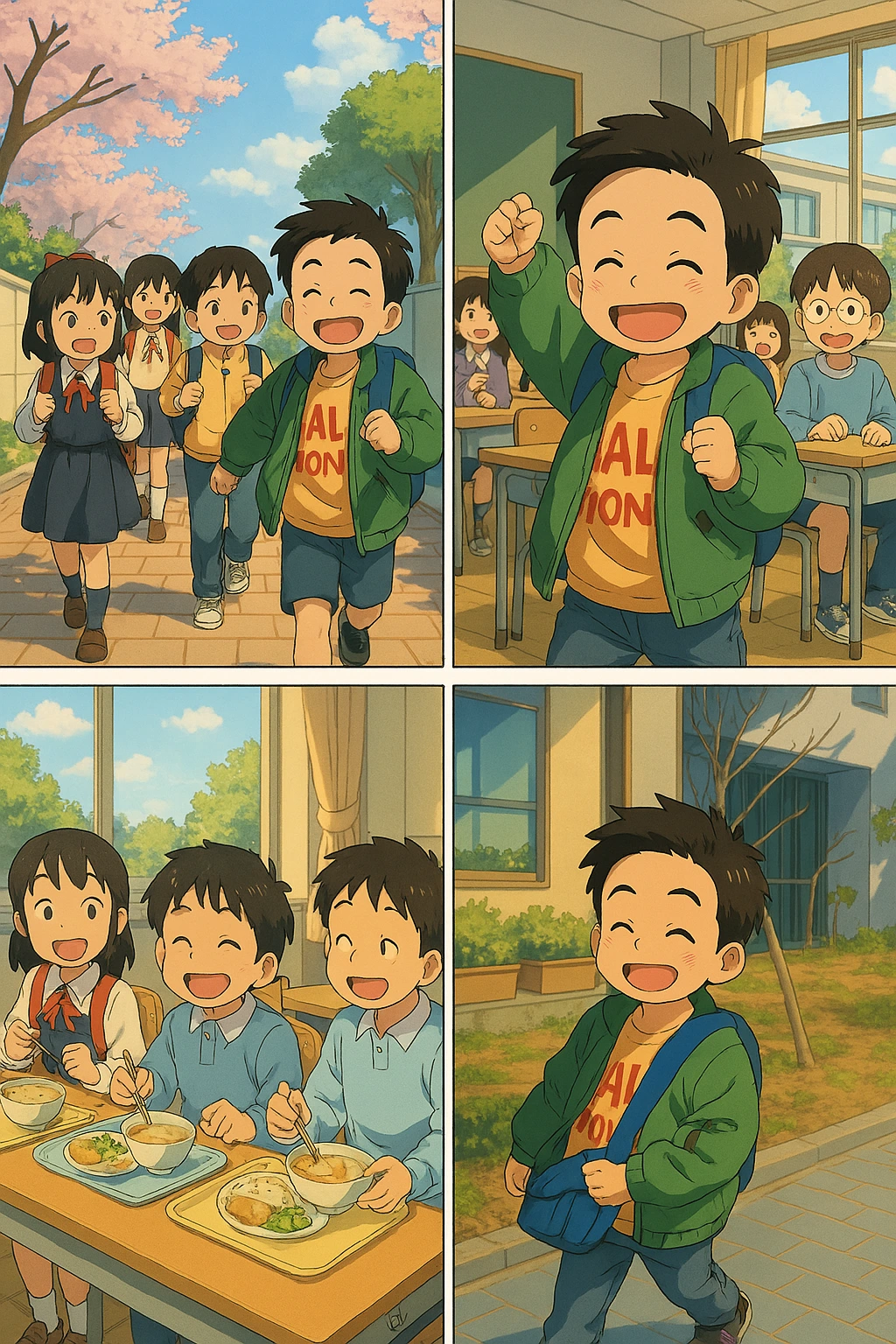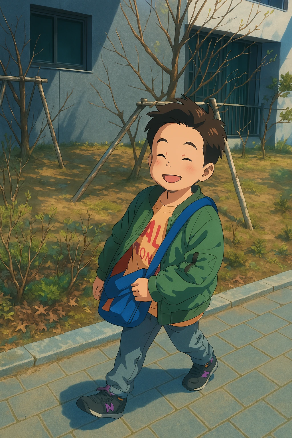 한 장의 사진을 넣으면 순식간에 내가 일본 애니메이션의 주인공처럼 변해 있었다. 나도 홍시 사진으로 여러 번 시도해 봤다. 마치 ‘센과 치히로의 행방불명’이나 ‘이웃집 토토로’ 같은 애니 속 세상에 들어간 것처럼, 아이의 표정도 배경도 너무나도 동화 같았다. 그걸로 네 컷 만화도 만들어봤고, 배경만 바꾸면 금세 또 다른 이야기로 재탄생했다.