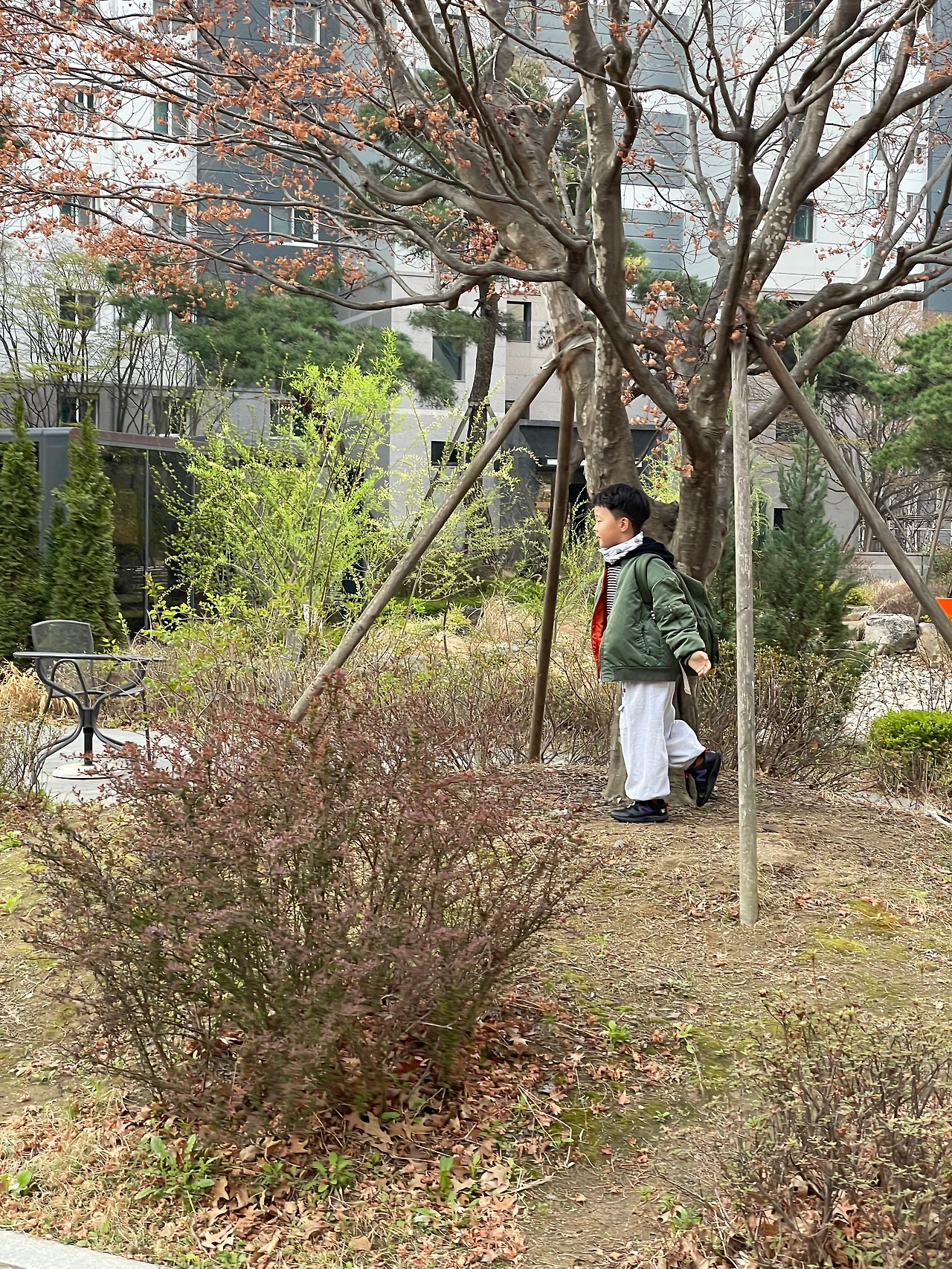 가끔 아들의 뒤를 따라 걷다 보면, 문득 이런 생각이 든다. 초등학교 1학년 남자아이들은 마치 오프로드를 달리는 SUV 같은 느낌? 멀쩡한 인도를 놔두고 경계석을 밟고 지나가야 하고, 낙엽 쌓인 길이나 움푹 파인 잔디밭은 꼭 밟아봐야 직성이 풀린다. 심지어 아무것도 없는 길에서도 굳이 멀리 있는 나뭇가지 사이로 비집고 들어가길 좋아한다. 그게 더 힘들고, 더 복잡하고, 때로는 신발이 젖기도 하지만 거기서 즐거움과 성취감을 찾는 것 같다.