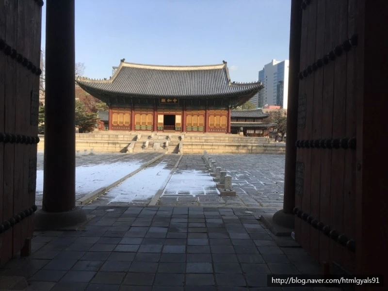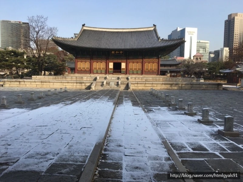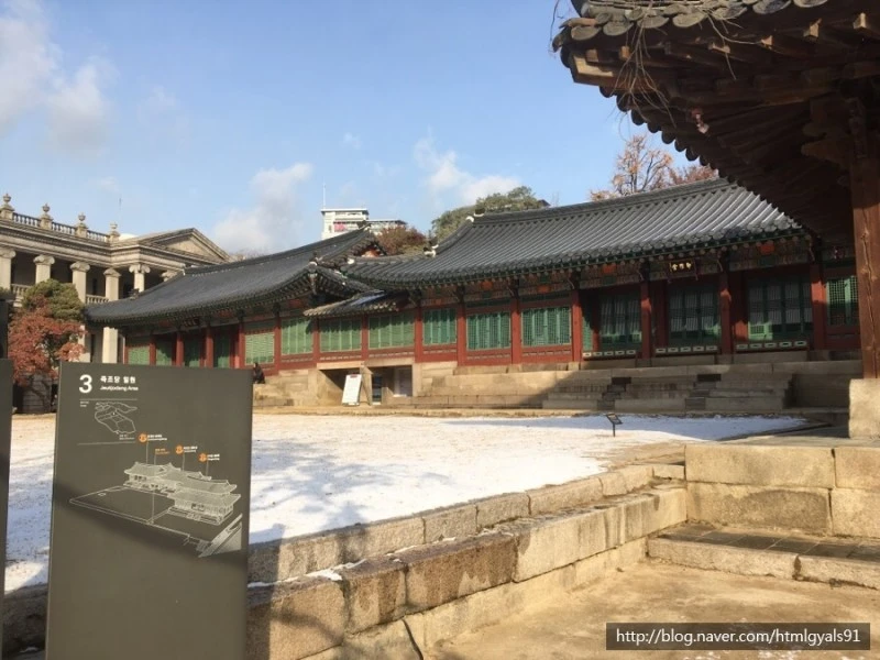 즉조당과 준명당에 해당이 되며, 바로 옆에 있는 하얀 건물이 석조전 동관에 해당합니다. (아주 왼쪽 끝 위) 사진에 해당하는 그림이 약간 위치가 헷갈리니 실제 경운궁 내부에서 표지판을 잘 보고서 위치를 확인하면 좋을 것 같습니다.