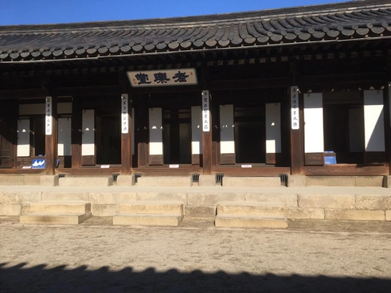 노락당 남쪽의 남행각은 명성황후가 삼간택을 마친 후 왕비 수업을 받았던 곳이고, 고종 3년 고종과 명성황후의 가례가 있었던 곳이다.