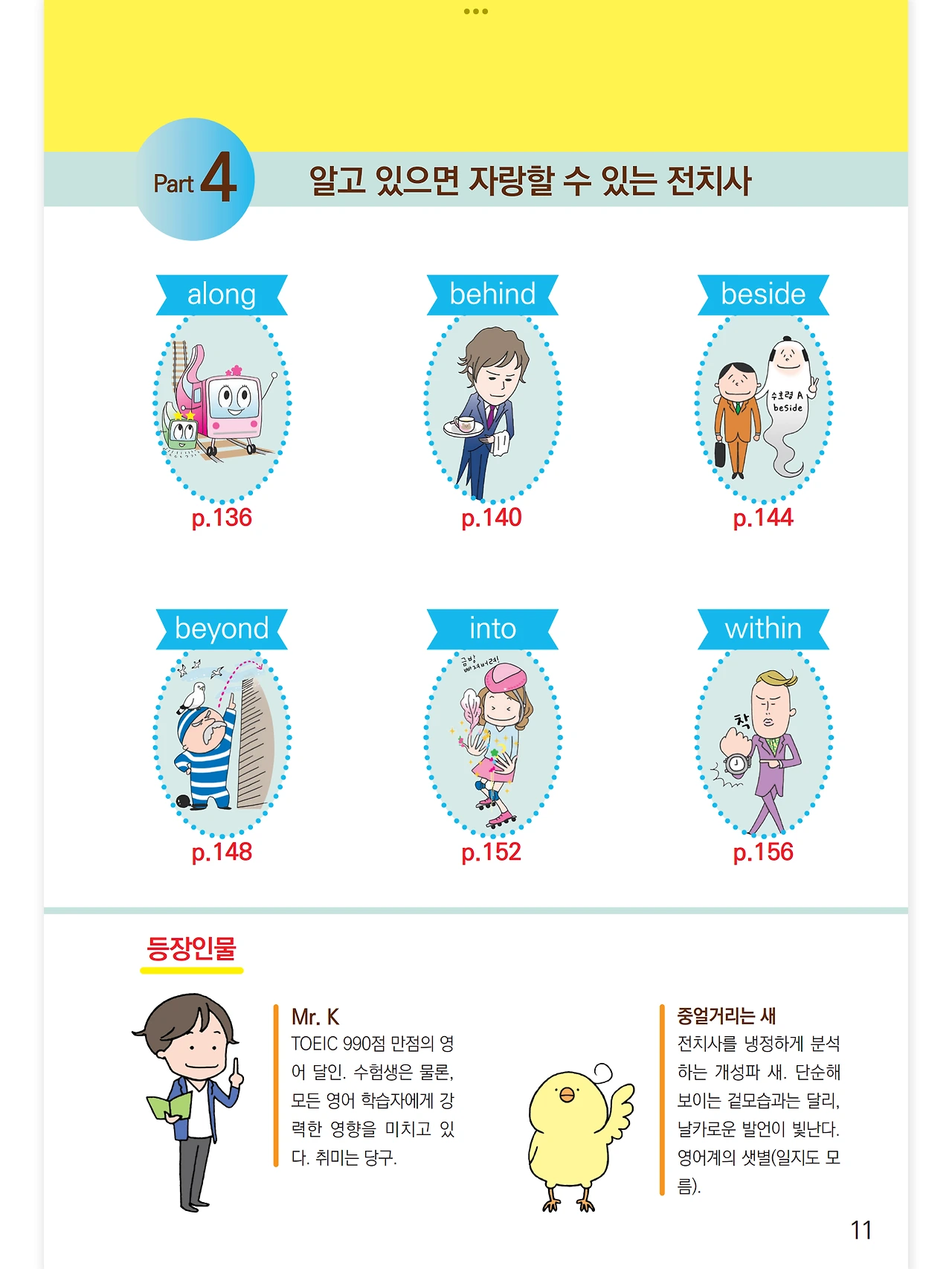 원어민들은 전치사나 분사구문으로 많은 것들을 해결합니다. 이걸 처음에 영어공부를 할 때 몰랐습니다. 저는 중3 때 처음으로 이보영의 토킹클럽이라는 학원을 2달 다니게 되었습니다. 당시의 그곳의 영어 선생님들은 원장님의 아들 딸이었고, 둘 다 교포 수준의 영어를 구사했습니다. 모든 수업들이 영어로 진행되었기에 선생님들을 보면서 감탄 아닌 감탄들을 항상 했습니다. 하지만, 저는 그곳을 다니면서 영어 실력이 늘 것 같다는 느낌이 안 들었습니다. 자꾸 겉만 도는 느낌이 들었고, 채워지는 느낌이 생기지 않았습니다. 물론 학원의 커리큘럼들은 체계적 정해져 있었지만, 뭔가 모를 허전함이 있었고, 했던 말만 반복하는 느낌이 있었습니다. 주제가 바뀌면 첫 몇 문장은 새롭다가도 다시금 돌아오는 영어를 배우는 느낌이 차곡차곡 쌓이는 느낌은 아니었습니다.