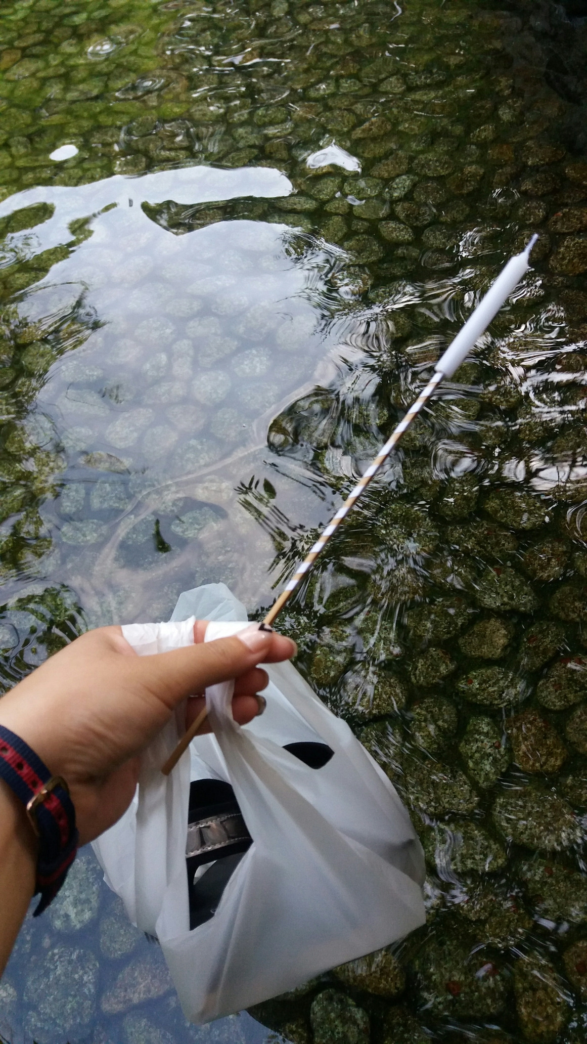 그곳에서는 300엔을 내면 하얀 봉투와 촛불을 주는데, 하얀 봉투는 신고 있던 신발을 담는 곳이고 촛불은 소원을 빌고서 끄는 도구로서 주는 것이다. 냇가를 지나서 불을 켜는 곳에 도착하면 자신의 소원을 말하는 장소에 이르게 해 준다.