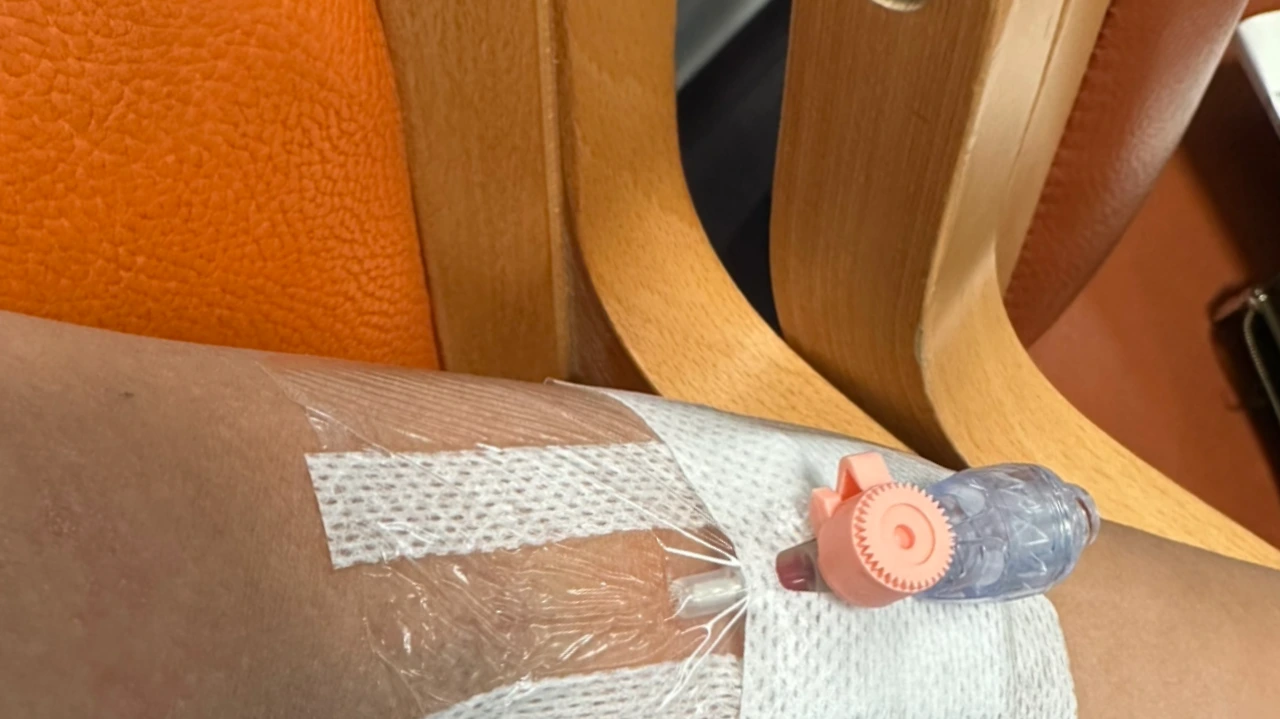 혈관 찾는데 오래 걸렸다. 팔을 쥐어짜며 겨우 찾아 피를 뽑고 만약을 대비해 약 넣을 관을 미리 꽃아 두었다. 이러고 5시간 대기해야 한다.