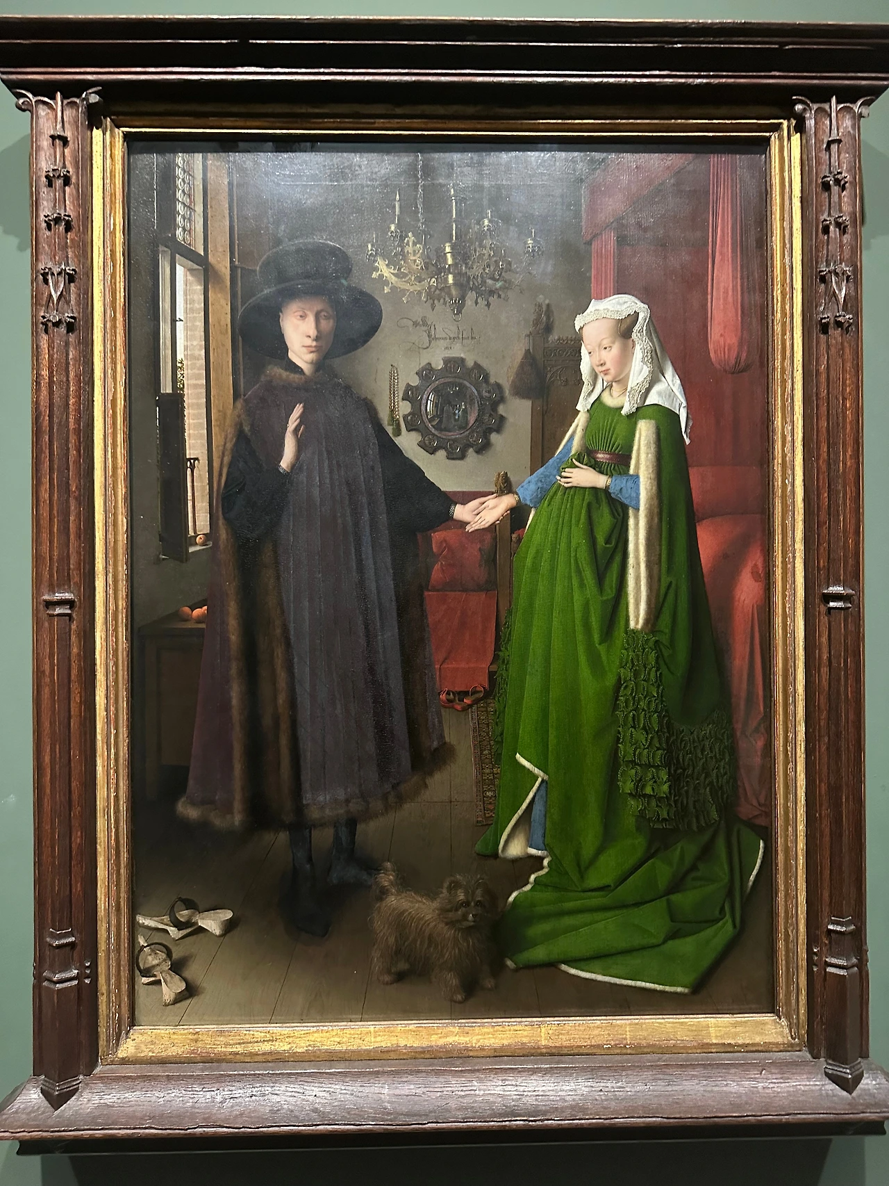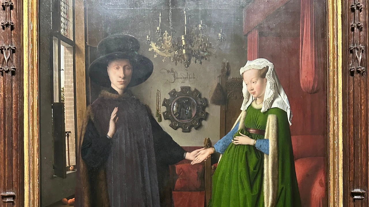 내셔널 갤러리에서 가장 인기 많은 작품 중 하나인 아르놀피니 부부의 초상 앞으로 이동했다.