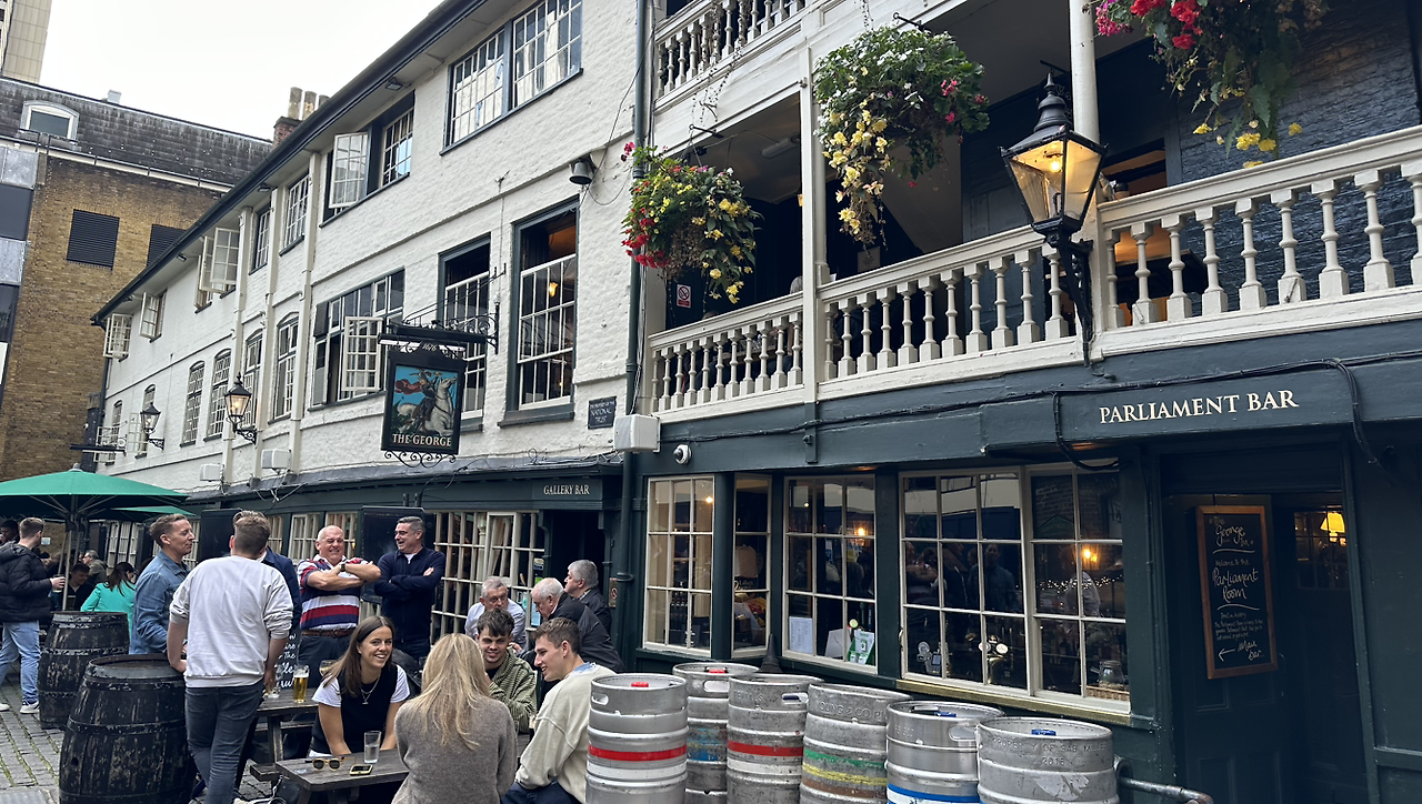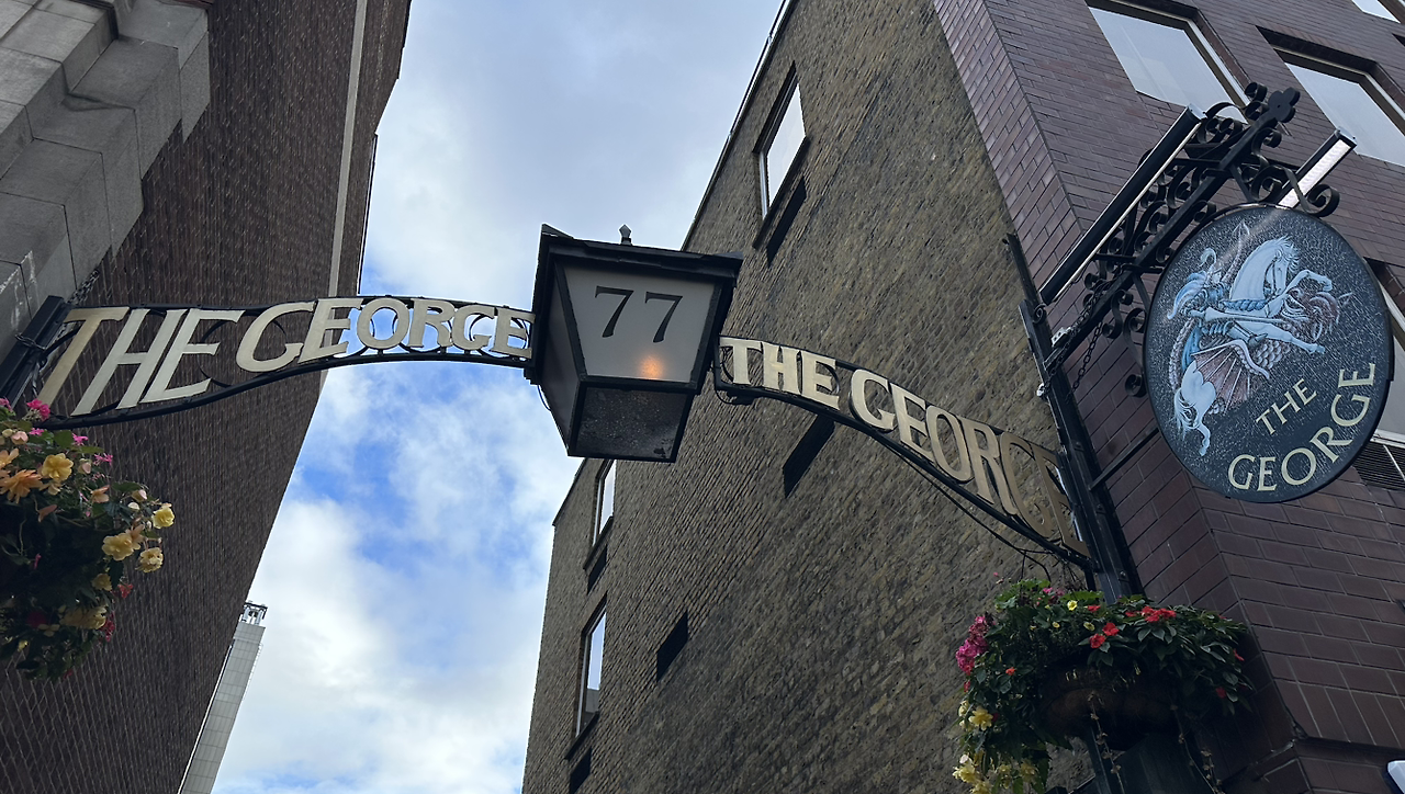 영국의 셰익스피어, 찰스 디킨스 그리고 처칠 총리까지 조지 인(The Gerge Inn)에서 에일 맥주를 즐겨 마셨다고 한다. 런던에서 가장 오래된 펍 중 하나다. 이 건물은 화재 이후 1600년대에 다시 지어졌다고 알려져 있지만 실제로는 더 오래되었다.