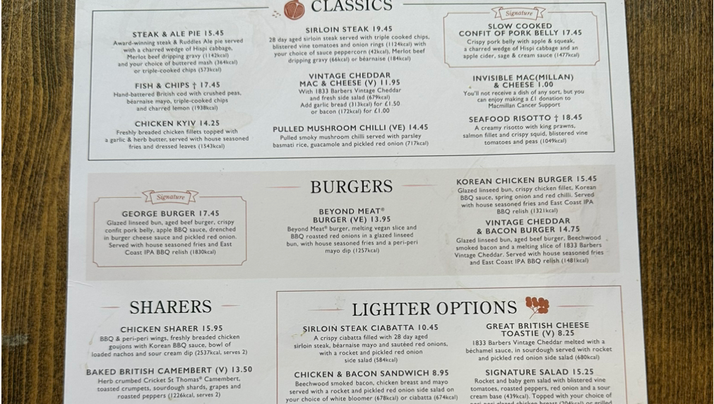 최근 메뉴에 코리언치킨 버거가 추가되어 있다. 요즘 영국에서 K-Food 한국 치킨 인기가 많다.