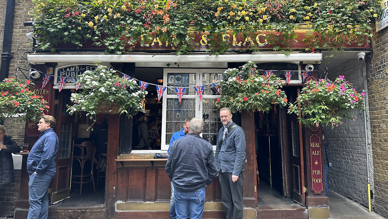 영국 전통 음식 스테이크 앤 에일파이를 에일 맥주와 함께 맛보기 위해 영국적인 펍 중 한 곳인 런던에서 가장 유서 깊은 펍 램 앤 플래그(Lamb&Flag)를 방문했다.