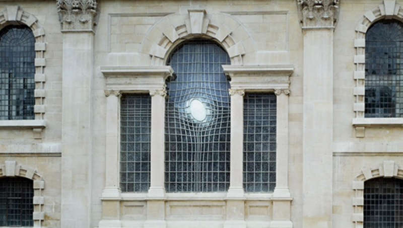 십자가를 연상시키는 가로선과 세로선은 빛이 통과할 수 있는 중앙 개구부를 향해 움직이게 표현함으로 우주가 분해되는 과정을 나타내고 있다. 모든 것이 침식 상태에 있지만 안정시키기 위해 노력하는 긴장감이 창문 속에 담긴 핵심 표현이다.