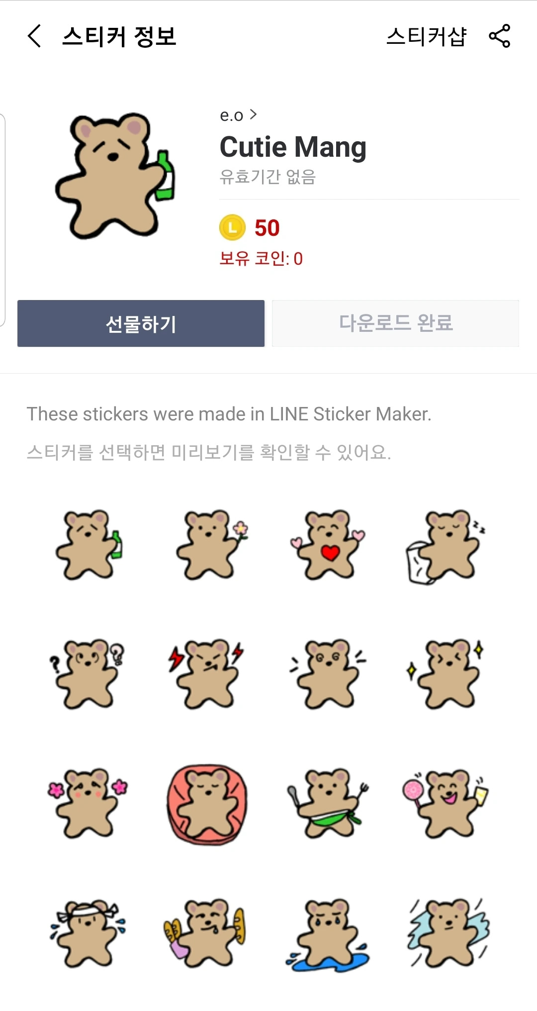 라인에서 스티커(이모티콘)를 출시했어요^^
