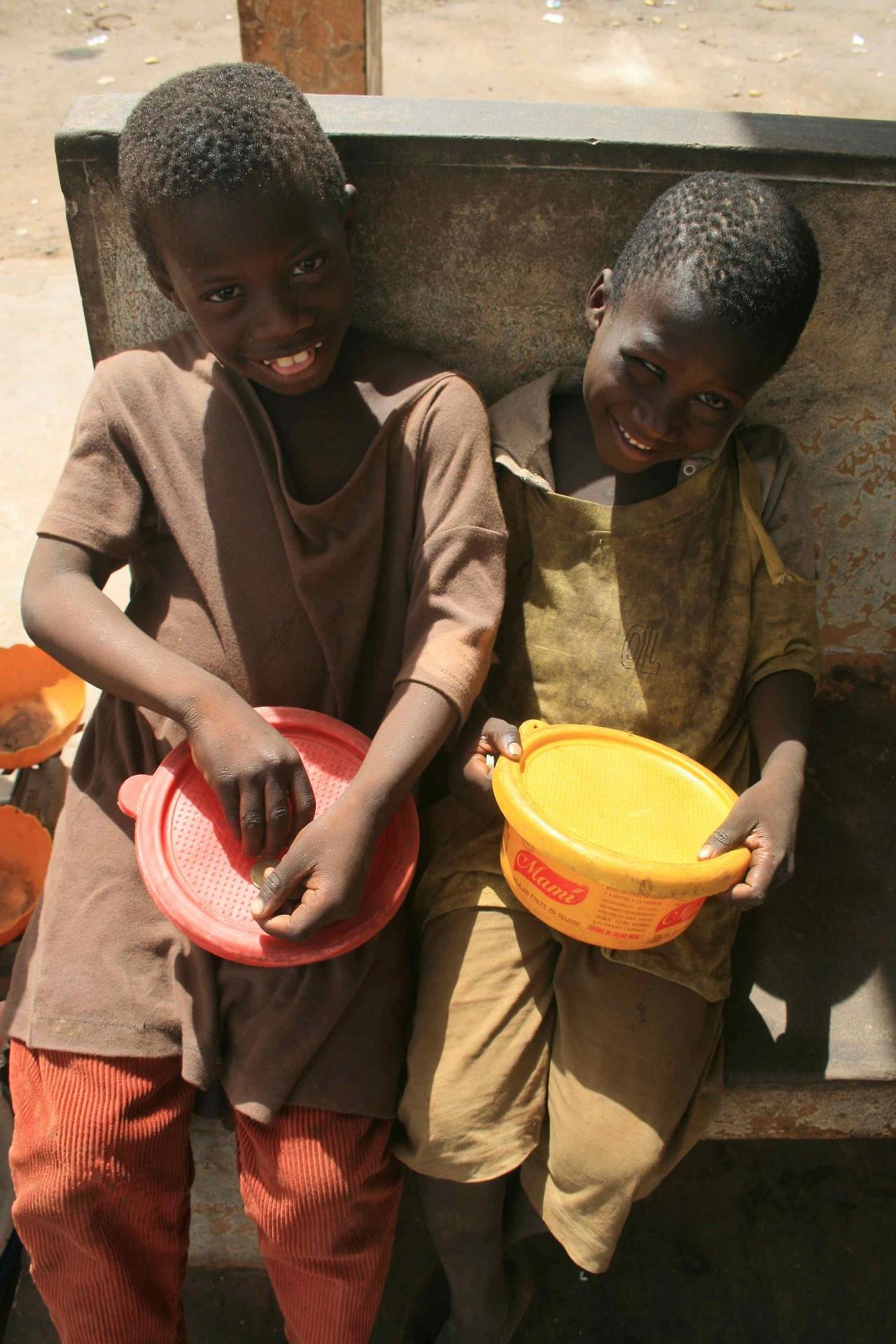 이 아이들은 어린 나이에 부모에 의해서 또는 부모가 없어 타의로 이슬람 코란 학교에 보내진 아이들입니다. 세네갈 전역에서 쉽게 찾아볼 수 있는데요. 날마다 돈과 음식을 구걸하고 그것을 현지 이슬람 종교지도자인 마라부에게 가져갑니다. 그 돈과 모아진 자원들은 사원운영과 마라부의 활동을 위해 사용됩니다. 하루에 현지돈으로 150원에서 200원의 돈을 모아오지 못하면 체벌을 당하기도 합니다. 하지만 사람들은 이것을 종교적 수행의 과정이라고 생각하고 이 아이들의 인권과 자주적인 삶의 권리에 대해서는 방관하고 있습니다.
