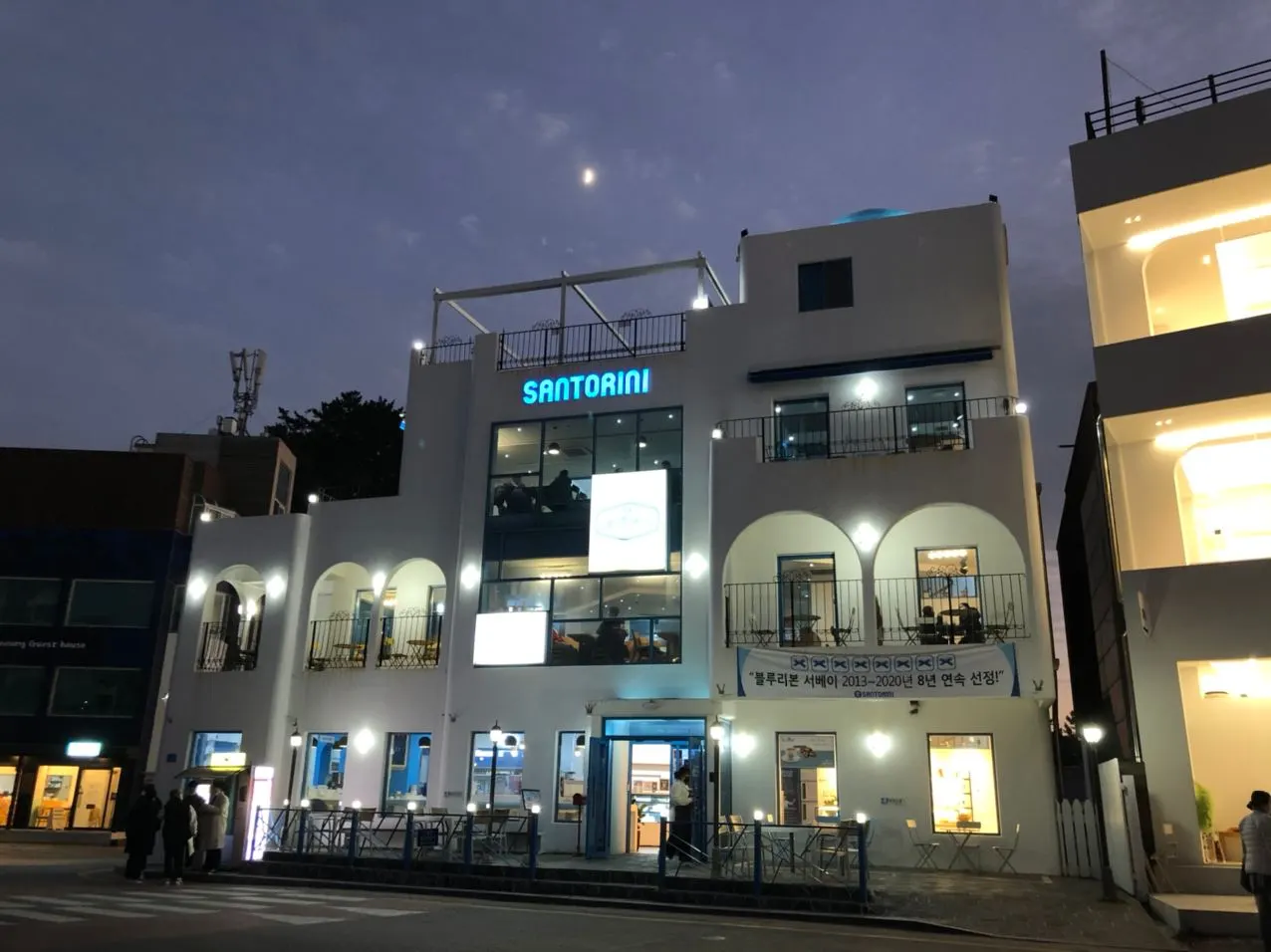 오늘은 초당순두부 대신 초당버거를 먹었고, 내가 걸었던 소나무 숲길을 따라 드라이브를 했다. 안목해변까지 가는 사이 완전히 해가 질 것 같아서 송정해변에 들렀다. 동쪽에서 보는 노을은 좀 더 아련한 느낌이다. 안목해변은 예전엔 횟집과 카페가 반반이었다면 지금은 완전히 카페쪽으로 기울어져 있었다. 이쁜 카페도 많이 생겼고. 내가 묵었던 그 민박집이 있을까 싶어 찾아봤는데 화려한 건물들 사이에 오래된 건물이 하나 있었다. 아마도 여기였던 것 같다. 내 저녁을 해결해줬던 산토리니도 여전히 반짝거리고 있었다. 두번째 영화 시간이 가까워져 다시 차에 탔다. 3시간 미션 성공이다.