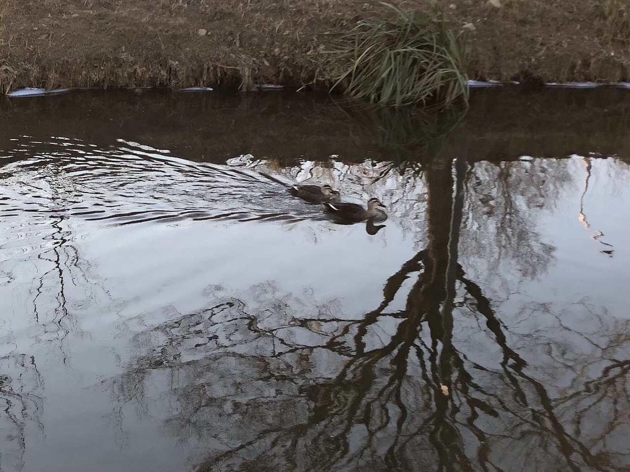 후배와는 4시쯤 만나기로 했다. 잠깐이라도 찬 공기에 산책을 할까싶어 10분 전에 나섰다. 집 앞에 화정천과 화랑유원지가 있는건 기쁨이지만 화정천을 건너 화랑유원지로 가는건 왜 이리 어려운지 모르겠다. 10분 밖에 없다는 이유로 건너가지는 않고 화정천변을 걸었다. 오리 두마리가 유유자적 하천을 거닌다.
