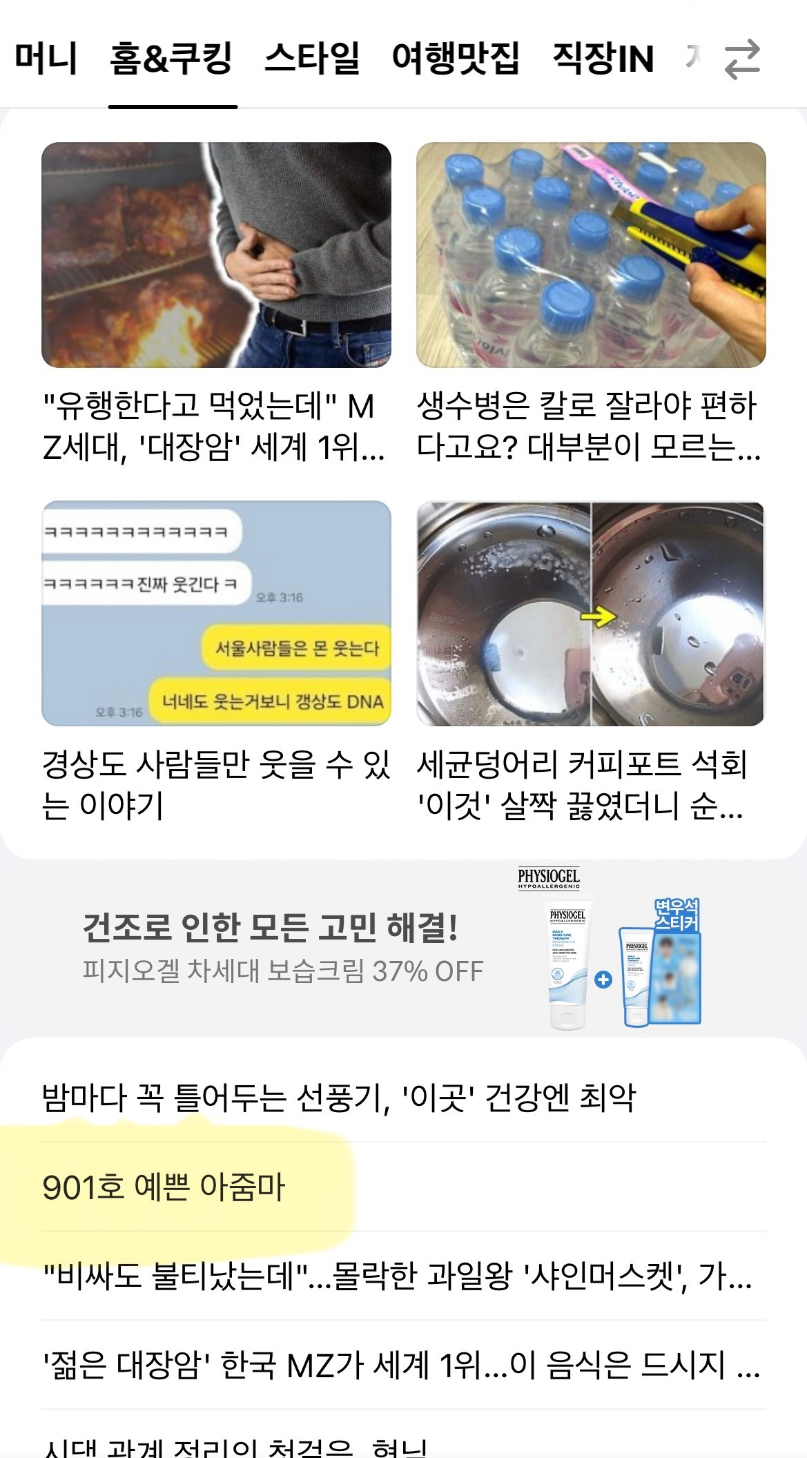 한 가지 힌트를 얻은 것이 있었다. '다음'메인에 등록되게 되면 조회수가 급증한다는 것이다. 나는 '다음'포털에 들어가 나의 글을 찾기 시작했다. 내가 무슨 명탐정 코난이라도 되는 양 미친 듯이 찾아 헤맸다. 찾았다!'홈&쿠킹'카테고리에 나의 글 제목이 있었다. 어머나 세상에 이게 무슨 일이야! 오랜 기간 이런저런 글들을 블로깅도 해보고 인스타도 했지만 이런 일은 또 처음이었다. 정말 처음 있는 일답게 야무지게 캡처했다.