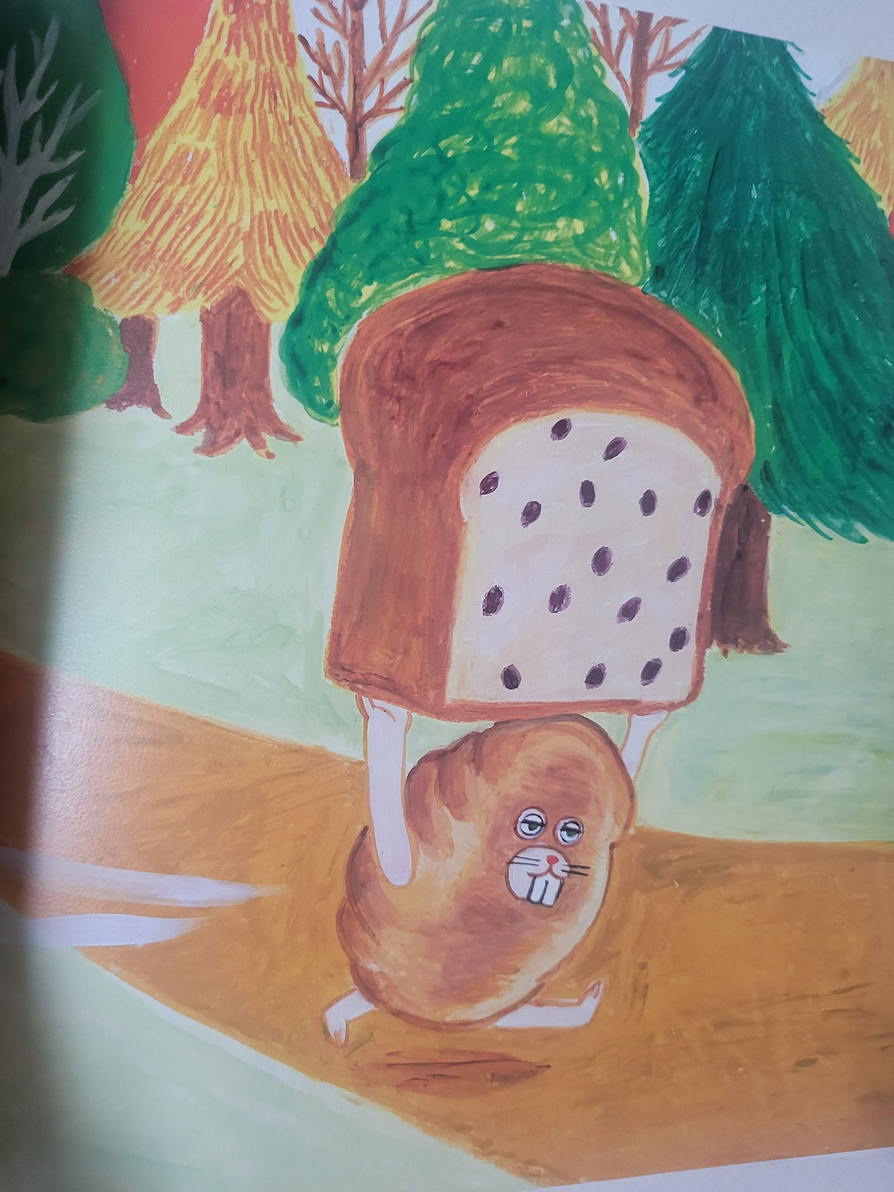 하지만 깜빡 졸고 있던 사이, 누군가가 빵을 들고 달아납니다.