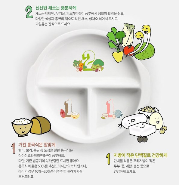 2:1:1 식판: 구획이 시각화된 접시는 시니어가 한눈에 균형을 파악하고 실천하게 한다.