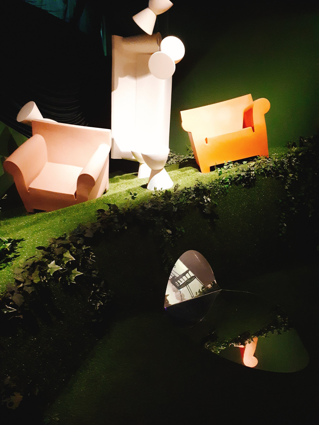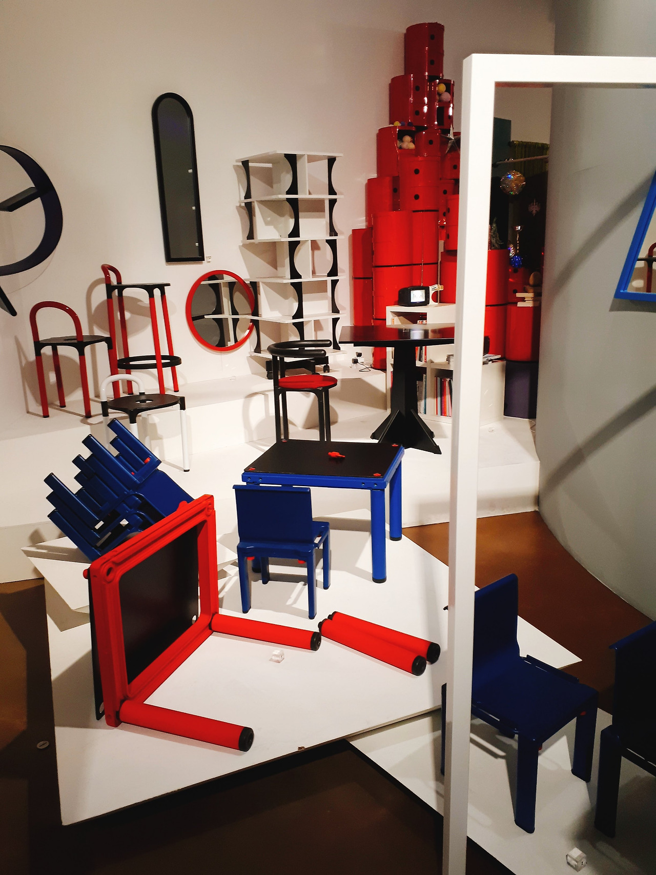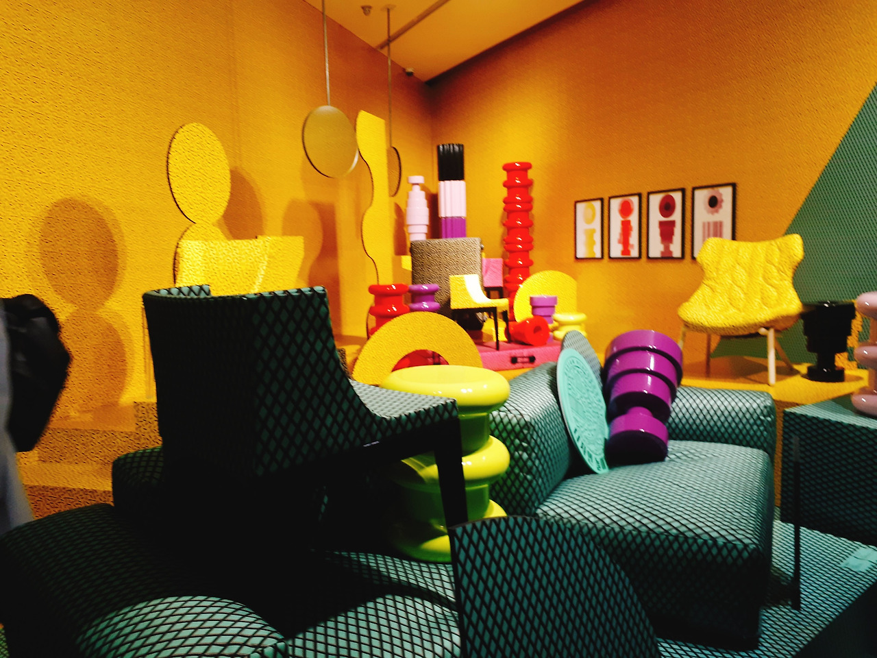 마치 파티 장의 샹들리에를 보는 듯한 느낌의 플라스틱 작품을 보고 2층에 올라오면 좀 존에 봤던 화려함과는 또 다른 화려함에 반하게 된다. 바로 비비드 한 컬러의 플라스틱 때문이다. 설명에 따르면 기존의 플라스틱은 화려함보다는 실용적인 것에 더 초점을 맞추고 있었다고 한다. 하지만 어는 순간 예술 작품은 실용성보다는 예쁜 게 우선이라는 의견이 나오면서 만들게 된 작품들이라고 한다. 그래서 이 작품들은 포스트 모더니즘에 속하는 작품이라 할 수 있다.