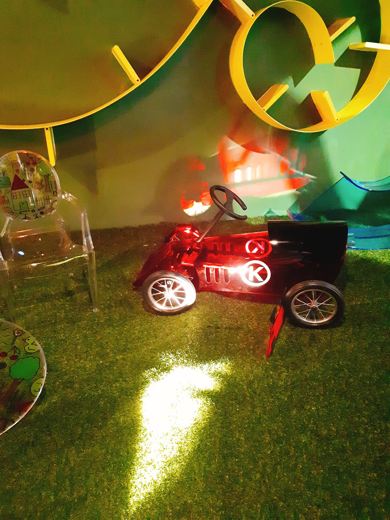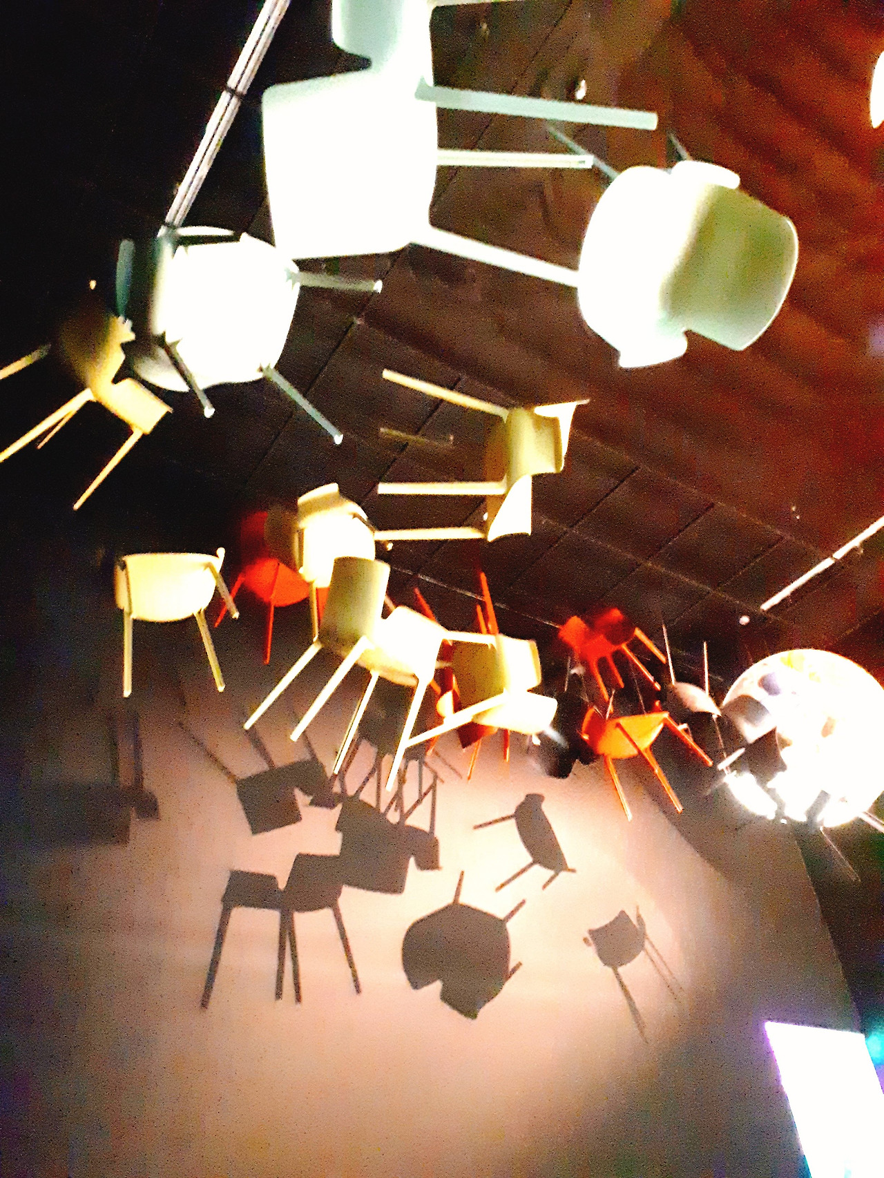 더 놀라운 것은 이 회전목마 위로 의자들이 공중에 떠 있는 모습으로 전시되어 있다. 공중에 떠 있는 의자는 어떤 아티스트가 고안한 디자인으로, 공기만큼 가벼운 의자는 없을까 하는 고민에서 시작한 작품이다. 그래서 디스플레이 역시 공중에 날아가는 형상으로 되었다.