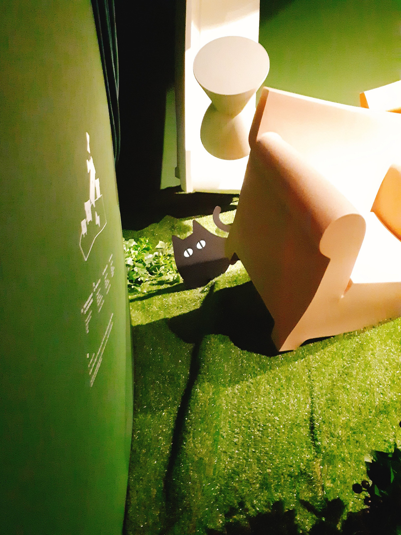 이 공간에는 마치 동화 속 공간의 느낌을 주는 소품들이 많다. 난쟁이, 기울어진 소파. 그리고 고양이까지. 이런 소품들과 특유의 분위기가 카메라를 저절로 들게 만든다.