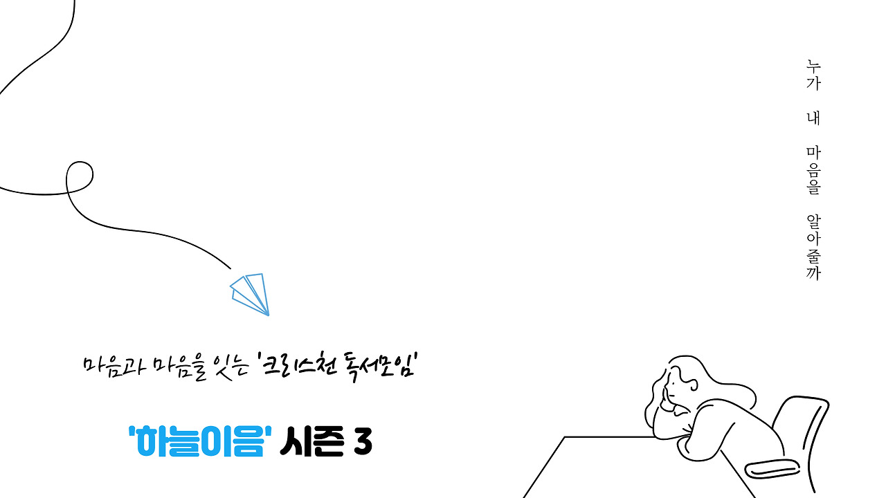 각각의 책들은 신앙에 대해, 진실에 대해, 삶의 태도에 대해 그리고 나 자신과 우리 주변에 대해 무엇이 가치 있는 길인지를 다루고 있습니다. 그리하여 지금을 성찰하고, 언젠가는 직면해야 할 선택의 순간을 그려보게 합니다. 때문에 <하늘이음>에서 함께 책 읽는 동안 그 선택에 앞서 경험과 지혜를 나누고, 조금 더 용기를 북돋는 시간이기를 기대합니다. 어때요? 이 모임을 한 번 ‘선택’해 보지 않겠어요? 두드리는 자에게 마음과 마음을 잇는…예기치 못한 기쁨이 찾아올 겁니다.