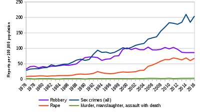 차례대로 스웨덴 (성)범죄 증가율 추이 변화, 전 세계 피난민 숫자 추이 변화, 미국 자살률 추이 변화 그래프