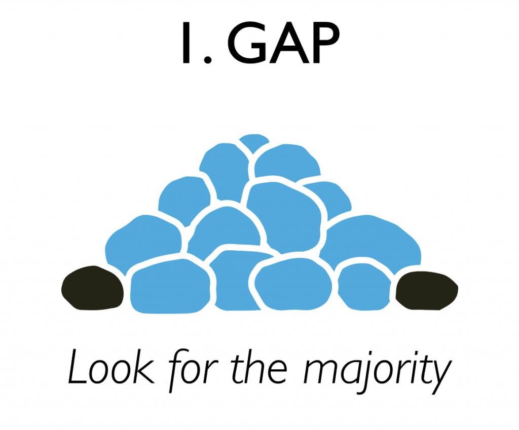 그렇다면 ‘평균 비교’와 ‘극단 비교’, ‘위에서 내려다보는 시각’ 각각의 오류 가능성을 품고 있는 ‘간극 본능’을 억제하기 위한 한스 로슬링의 제안은 무엇일까? “현실은 그렇게 극과 극으로 갈리지 않는다. 간극이 존재한다고 생각하는 그곳에 사실은 대다수가 존재하니, 다수를 보라”. 그런 면에서 극단적인 사회 계층을 제외한다면 사회 전반적인 영역에서 사람들 대부분은 평균적인 범주 안에서 삶을 영위하고 있다. 보편적이고, 일반적인 것이 주는 안정감이 상당할 뿐더러, 시스템을 유지하기 위한 검증들이 시기와 방법을 두고, 적절히 진행되었을테니 말이다.