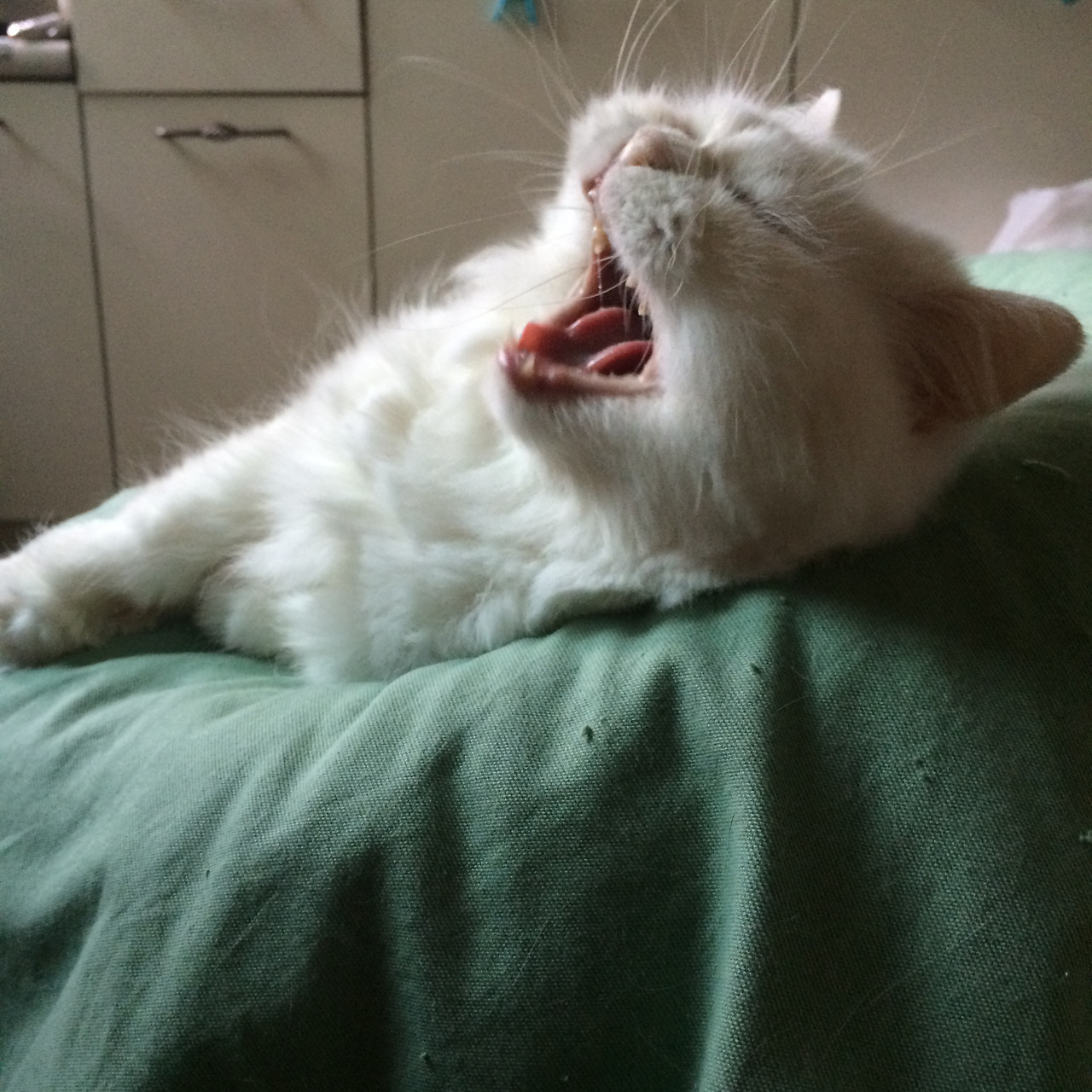 아래 사진은 우리 집 고양이가 하품을 하는 사진이다. 통증 관련 글을 써 보겠다고 노트북을 열고서 폴더를 뒤지다가 이 사진을 골랐다. 난 이 사진이 언뜻 '아파서 소리를 지르는 모습'으로 보인다. 글을 써야겠노라고 마음을 먹고 시간은 더디게 흘러갔지만 그 정도로 나는 아프고 힘겨웠다.