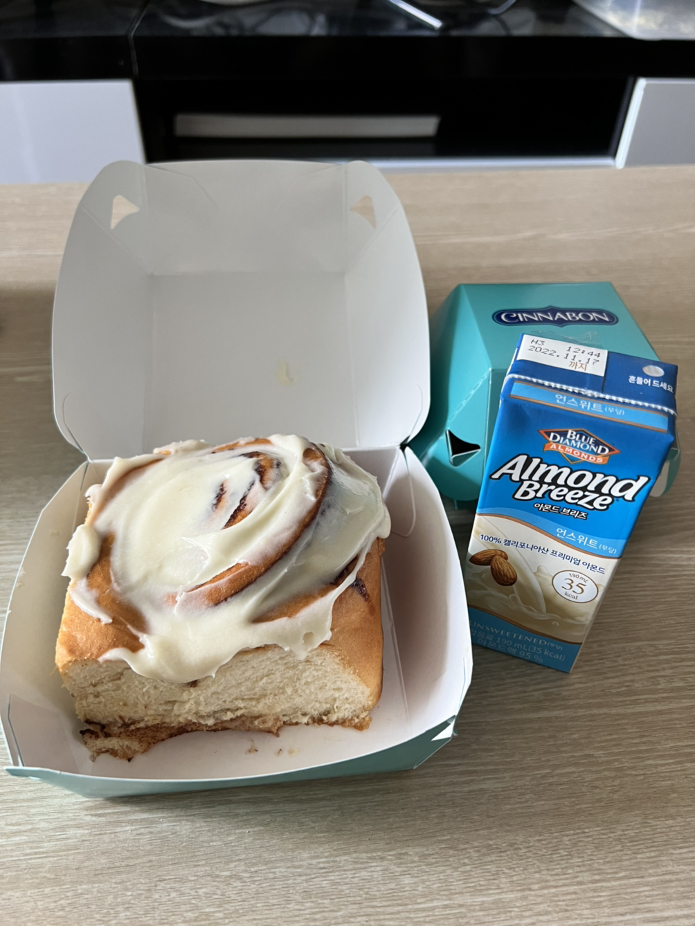 산부인과와 내과 모두 칭찬 받고 나니, 갑자기 기분 좋아져서 스스로를 칭찬할 겸 먹고 싶던 시나몬 빵을 사와서 먹었다.