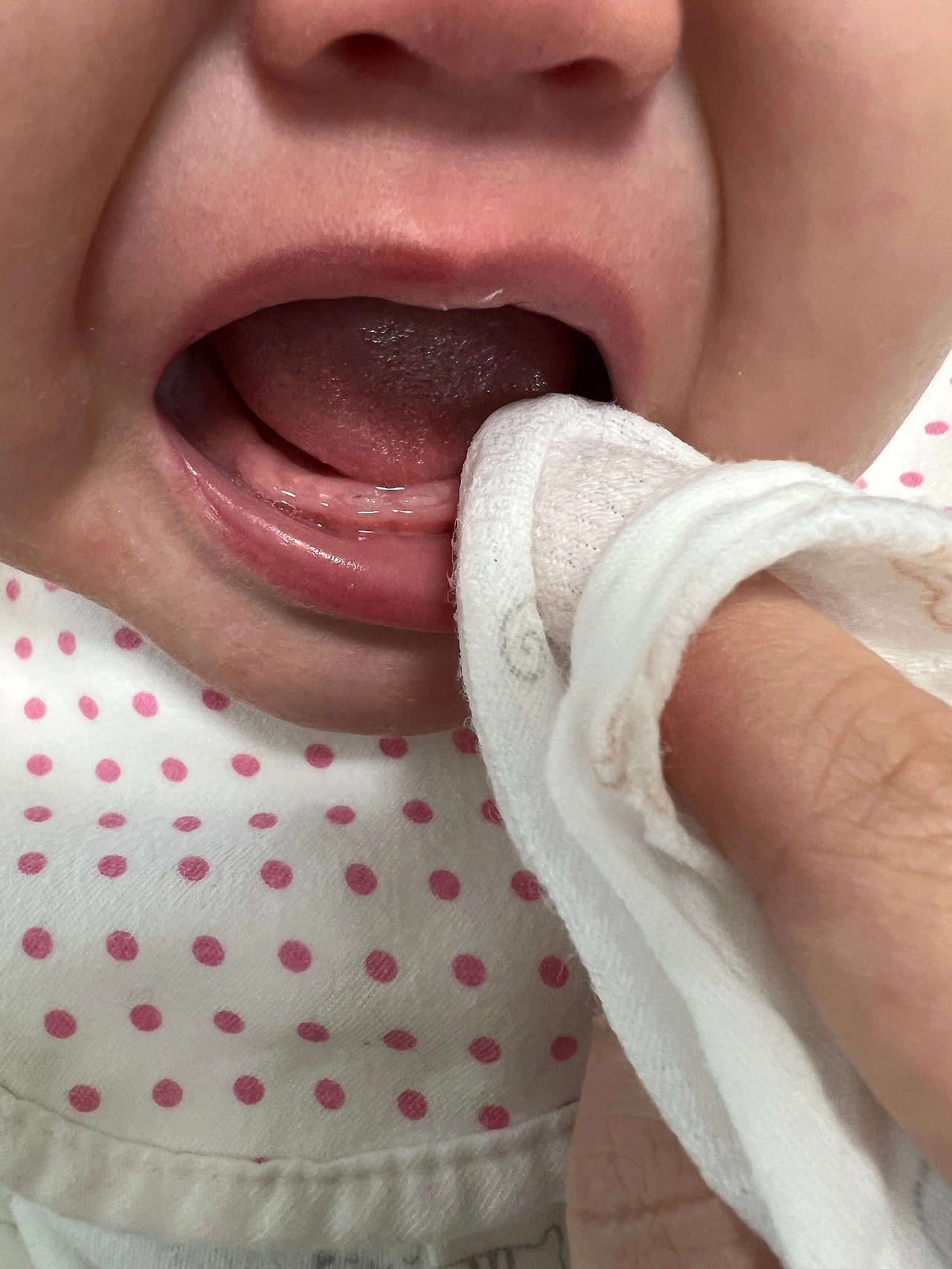 요즘들어 침이 늘고 손가락을 빠는 일이 많아져서, 곧 이가 나려나보다 하긴 했는데, 진짜 이가 났다.