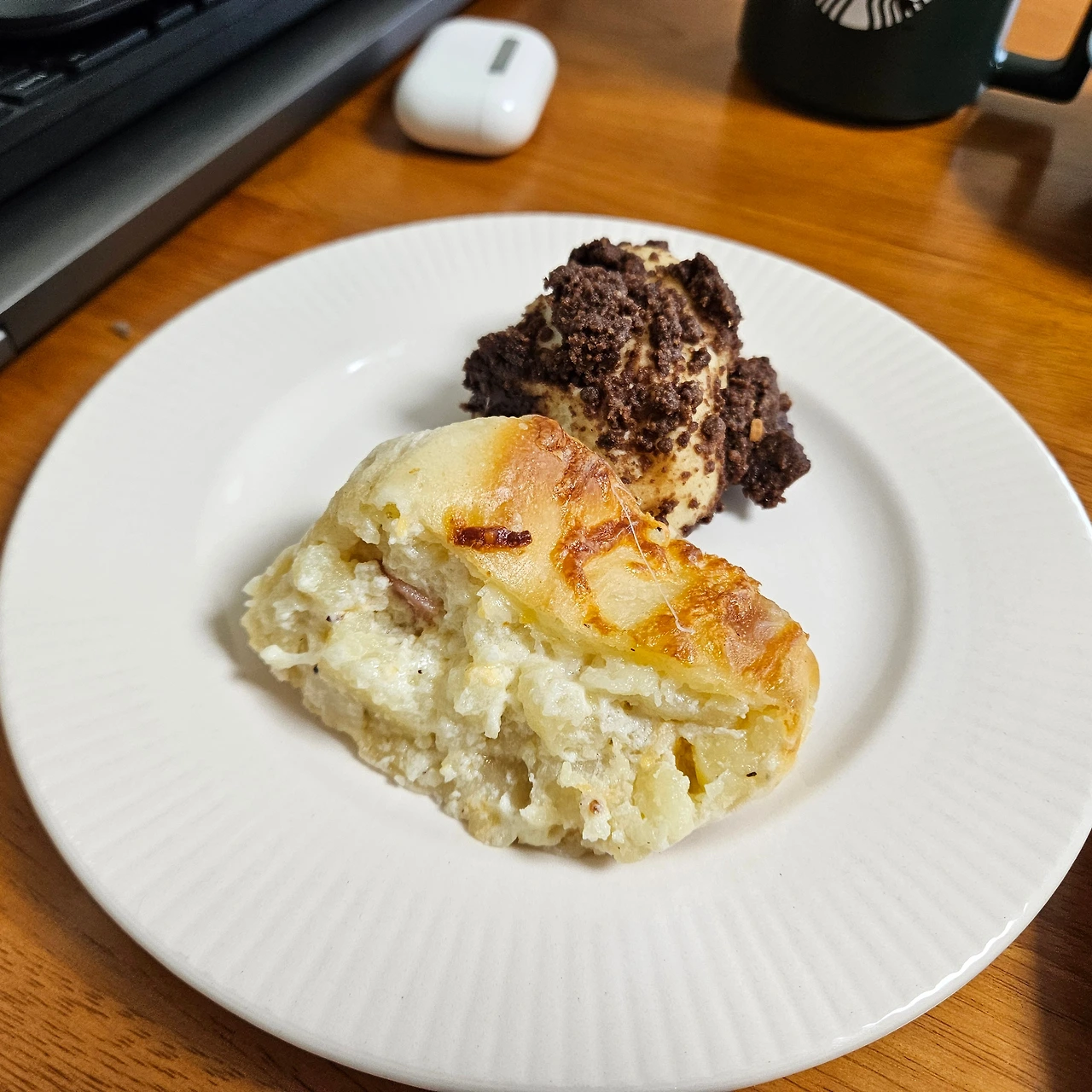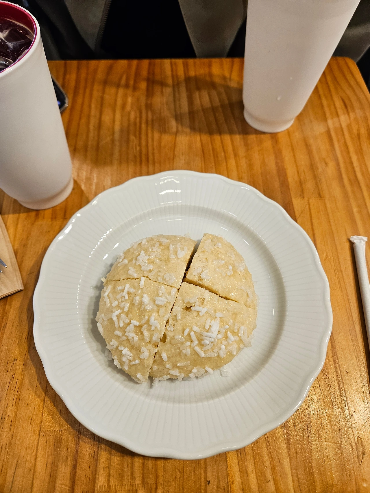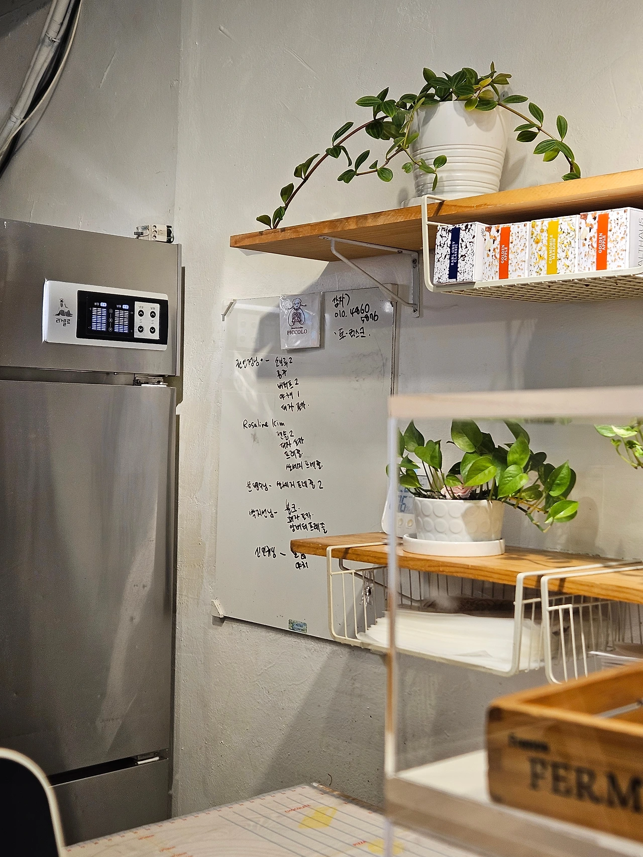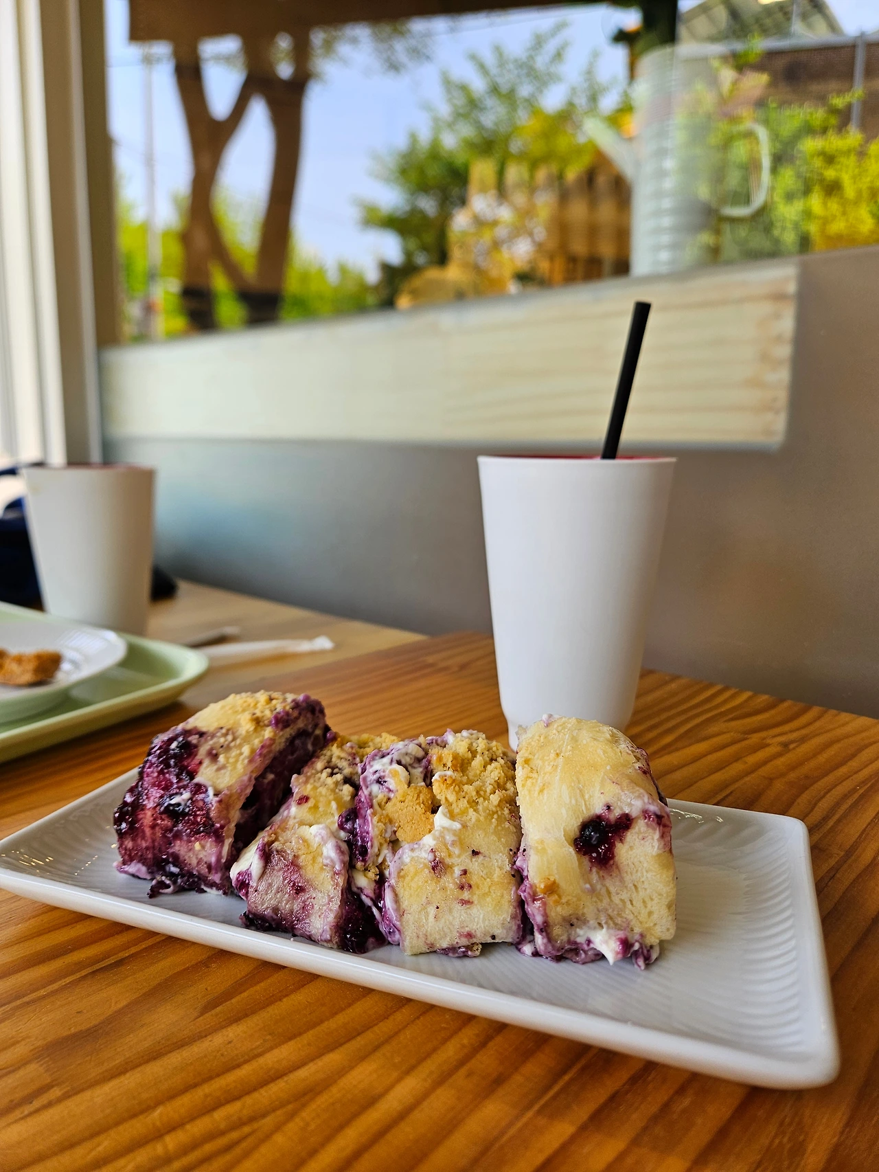 조리 시간이 조금 남은 메뉴가 있어 미리 예약을 걸어두었다. 벌써 앞선 손님의 이름들이 화이트보드에 적혀있었다. 대기 시간이 있더라도 지루하지 않다. 한적한 빵집 주변 동네를 한 두 바퀴 돌거나 매장 앞 벤치에서 솔솔 풍겨오는 빵냄새를 맡다 보면 어느새 빵이 나올 시간. 사장님은 포장하는 손님들에겐 빵을 컷팅해 갈 건지 항상 물어봐주신다. 사실 별것 아닌 확인사항인데 먹기 좋게 미리 잘라주시려는 사장님의 배려에 유독 기분이 좋았다. 그리고 매장에서 만든 피클을 서비스로 담아주시는데 소스 형태라 콕 찍어먹기에도 좋다. 빵을 다 먹는 마지막 순간까지 느끼함마저 잡아주는 톡톡한 역할을 한다. 종이 포장에 쌓인 빵들은 따뜻하고 부드럽고 고소한 향이 난다. 집에 오자마자 커피머신에 캡슐을 넣고 커피를 내렸다. 정성으로 만든 빵을 아무 그릇에 담아 먹고 싶지 않았다. 깔끔하고 예쁜 접시에 빵을 옮겨담으면 이제 맛있게 먹기만 하면 된다. 그렇게 진심으로 무장된 루틴들은 다정한 하루를 보낼 용기를 준다.