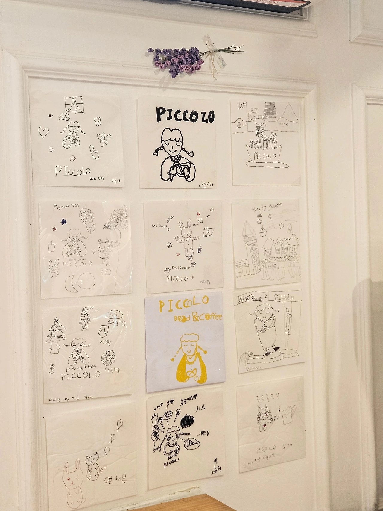 어느 책에서 '동네 빵집은 복지다'라는 문장을 보고 연신 고개를 끄덕였다. 늘 같은 자리에서 빵 냄새를 풍기는 빵집은 심리적 안정감을 준다는 것이다. 새로운 매장이 생겼다가도 금세 사라지고 마는 요즘의 현상과는 다르다. 꾸준히 자리를 지킨 동네 빵집은 일종의 커뮤니티 역할을 담당한다. 우리 동네 빵집 또한 커뮤니티 기능을 한다면 인근 초등학교 아이들과 부모들의 역할이 큰 것 같다. 매장에 들어서면 왼쪽 벽면에 빵집 간판 캐릭터 그림들이 걸려있는데 어쩐지 투박한 그림솜씨여서 사장님께 여쭤봤다. 초등학생들이 학교에서 가끔 그림을 그려 갖다 준다고 했다. 1년에 한 번씩 벽면의 그림들이 새로 교체될 정도로 많은 아이들이 이곳에서 추억을 쌓는 중이다. 동네 빵집 같은 곳들이 더 많아진다면 이 아이들은 자신이 자란 동네에서 부모님, 친구들과 더욱 긴밀한 연결감을 느끼고 소중한 추억들이 소복하게 쌓일 거다.