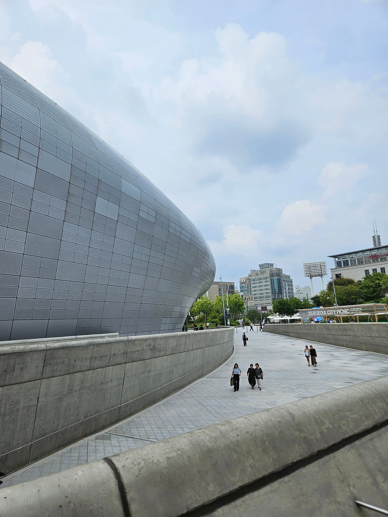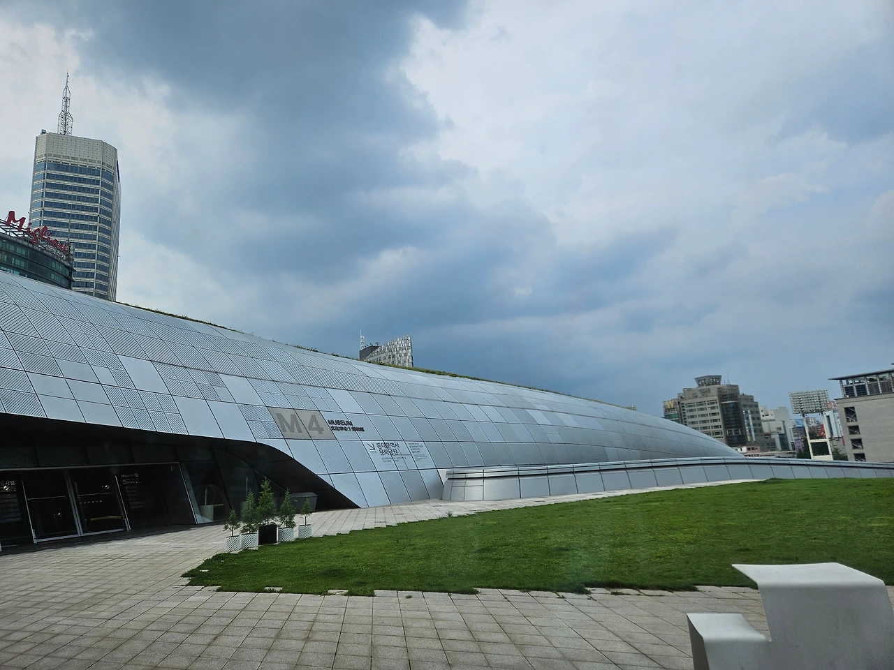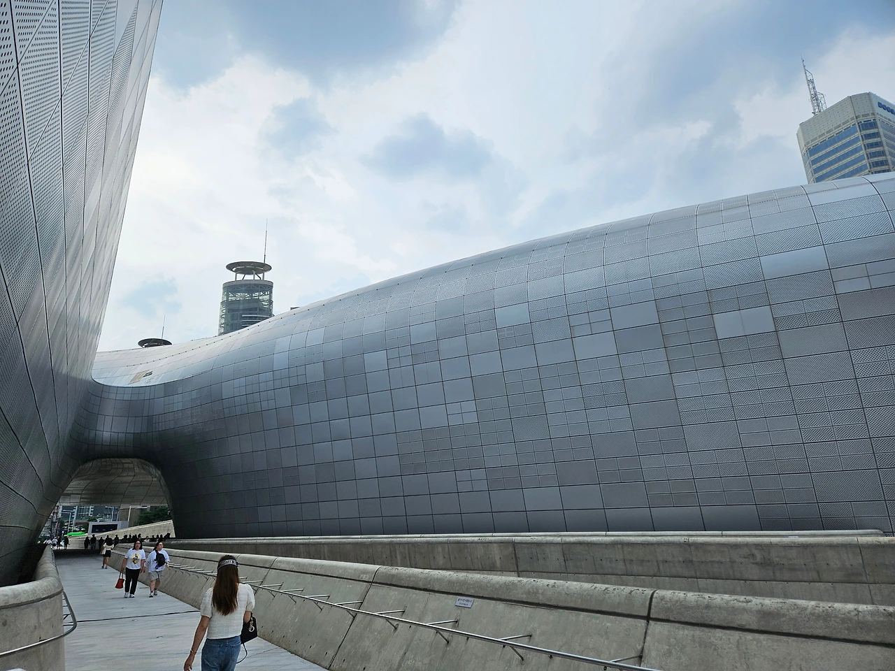 역시 건축투어만큼 흥미로운 게 있을까! 실외 공간부터 DDP 대표적 공간인 디자인랩과 뮤지엄 공간을 투어 해보기로 했다. 건축물 전체가 창문이 없는 알루미늄으로 되어있어 그저 디자인의 일부일 뿐이라고 생각했는데 디테일을 알고 나니 사소한 부분 하나하나 다르게 보였다.