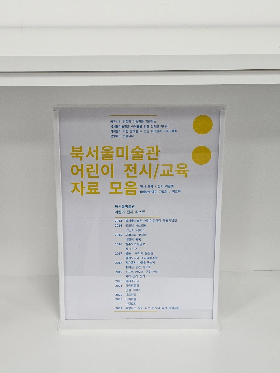 아이와 함께 온 어른도 옆에서 그림책을 보고 있는 모습이 좋아 보였어요. 북서울미술관에는 어린이 전시나 교육 자료도 있어 관련 프로그램도 다양해 보였습니다.