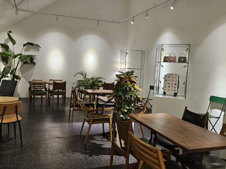 전시회, 미술 서적, 쉴 수 있는 쇼파.